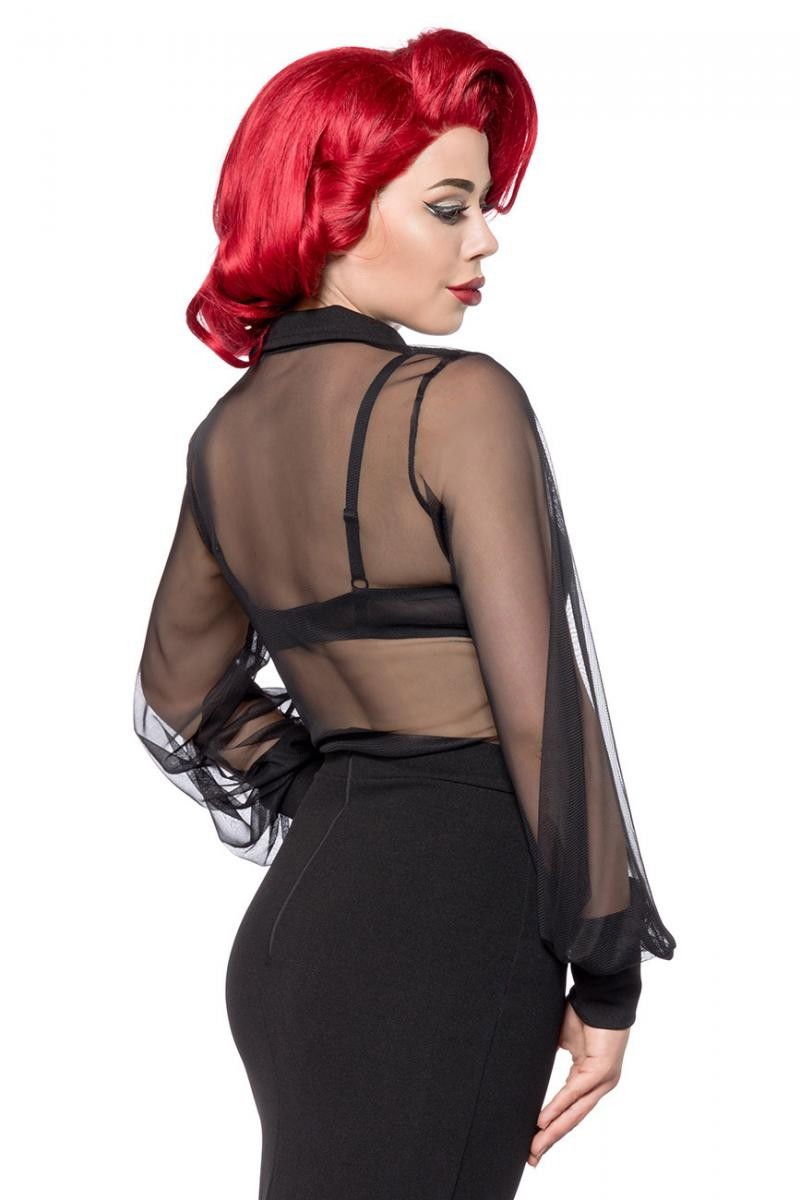 Camasa larga, din tul, transparenta, cu maneci lungi, stil Pin Up. Brand Belsira