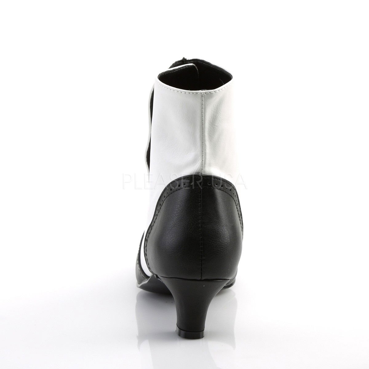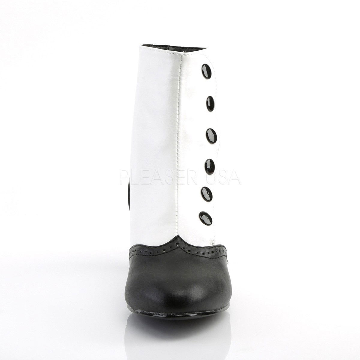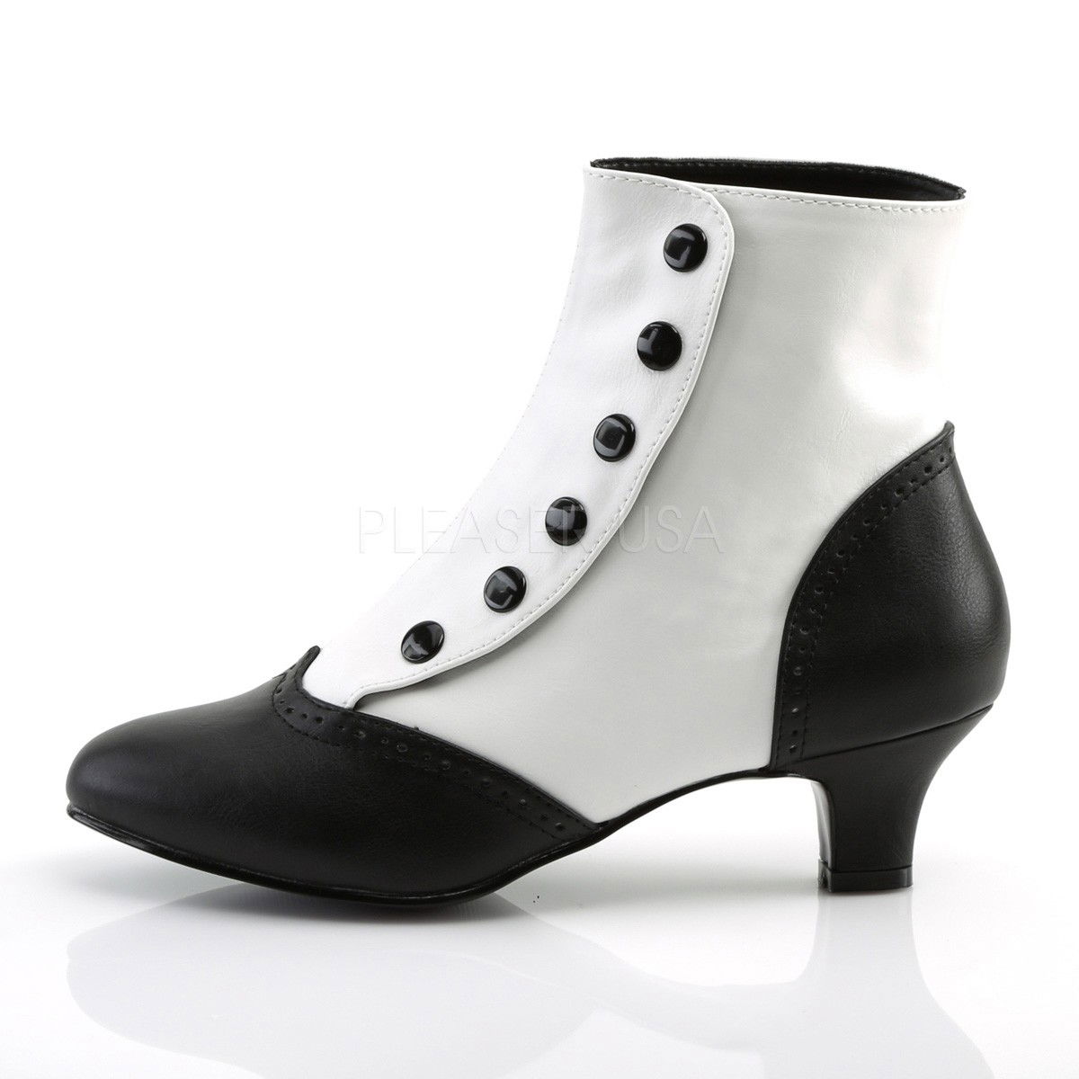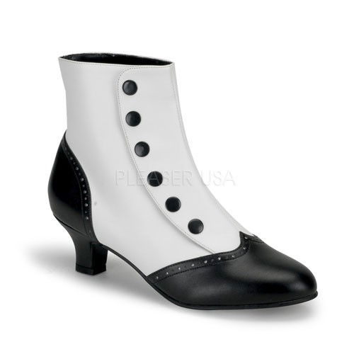Botine sexy, elegante, cu nasturi, cu toc mic, alb cu negru
