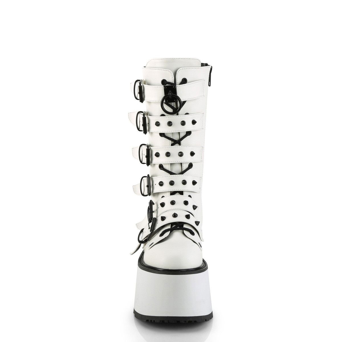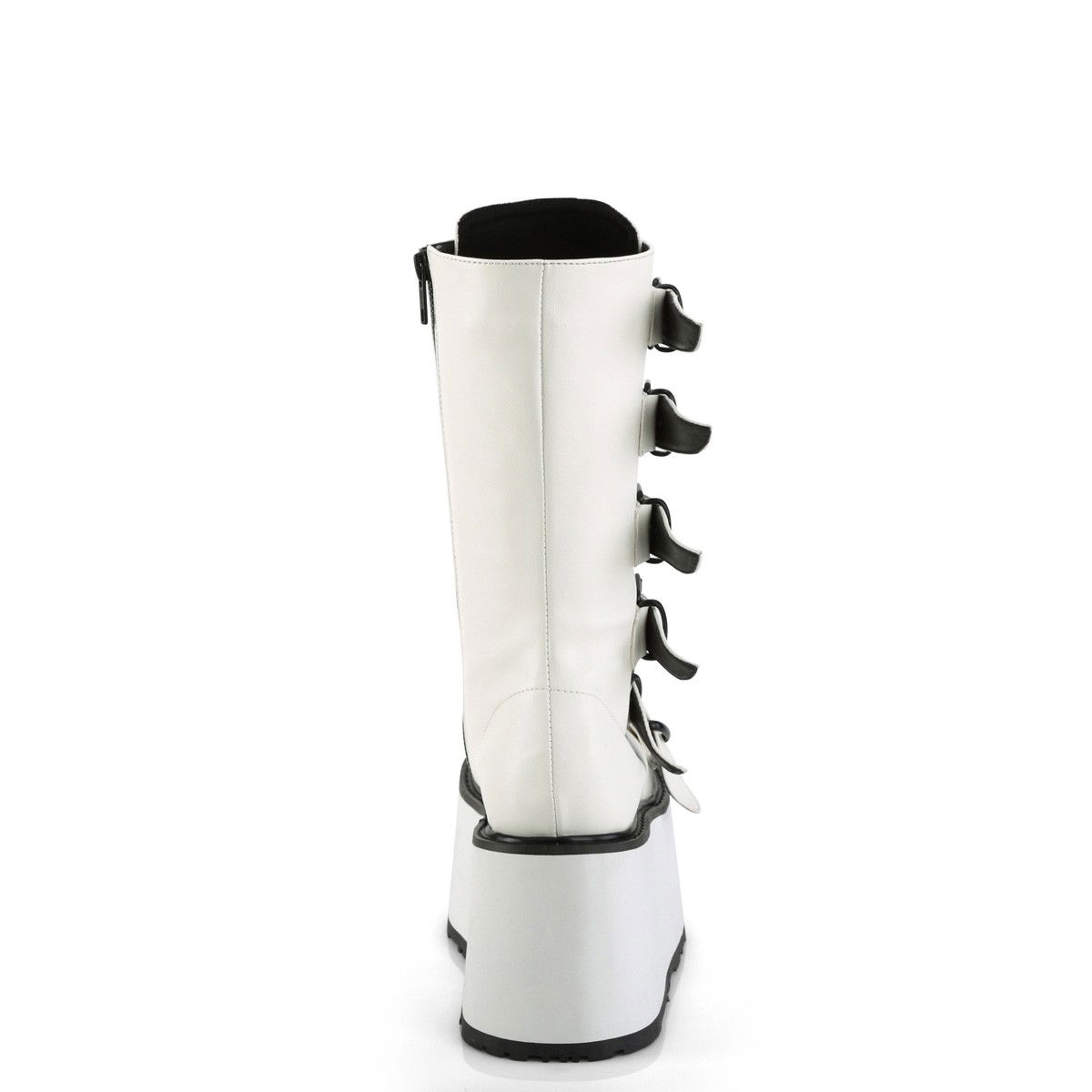 Ghete cu talpa lata, culoare alba, din piele ecologica, cu barete si fermoar pe interior. Brand DemoniaCult