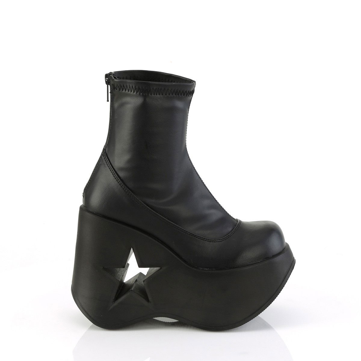 Ghete stil gotic, cu o stea in talpa, decupata, din piele ecologica strech. Au talpa ortopedica si fermoar la spate. Brand Demonia