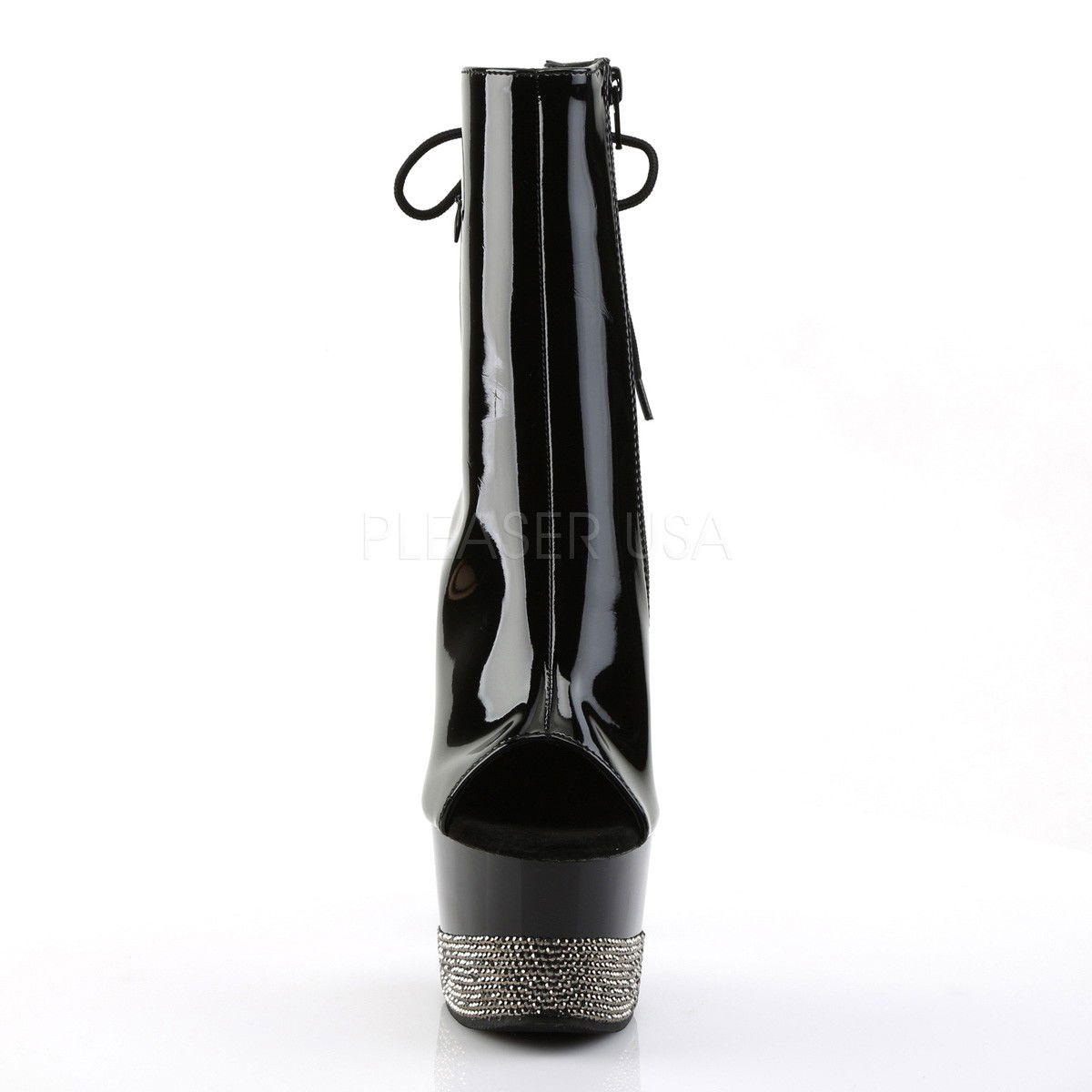 Botine elegante, cu varf si calcai decupate, platforma inalta cu pietricele, cu piele intoarsa pe talpa. Botinele au fermoar pe interiorul piciorului. De club