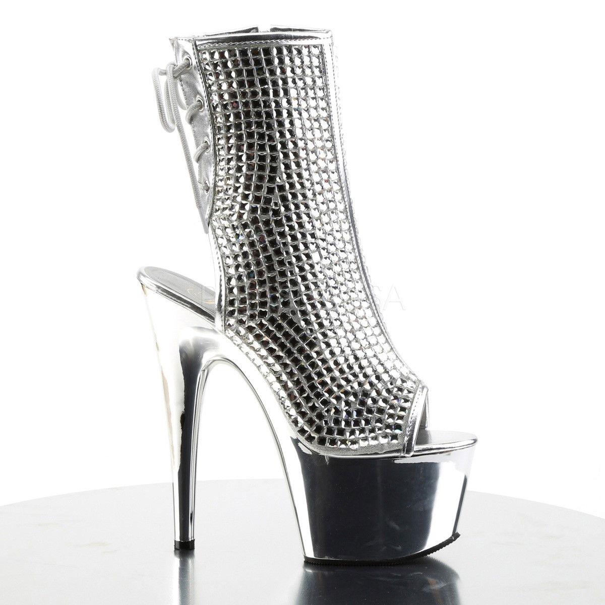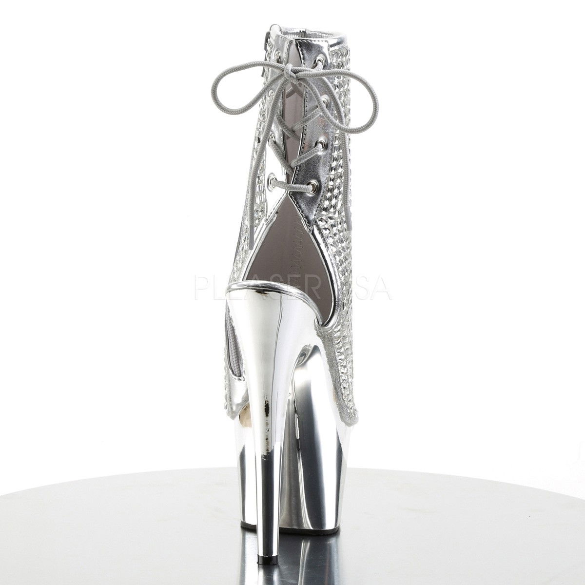 Botine stralucitoare, cu aplicatii de pietre, cu varful si calcaiul decupate. Cu fermoar pe interior