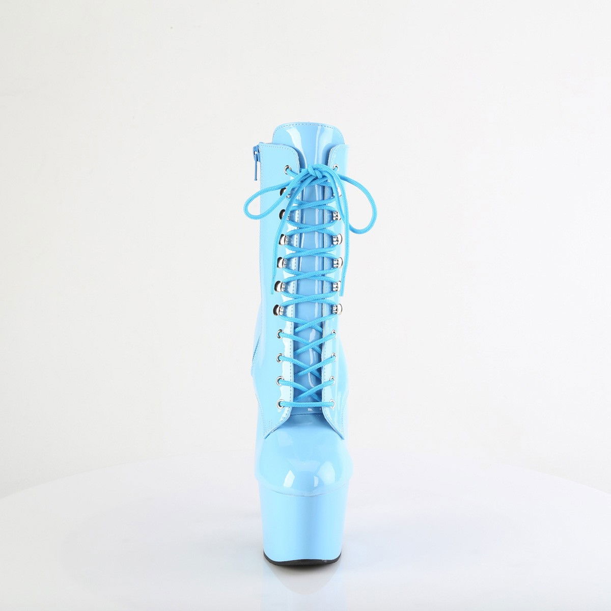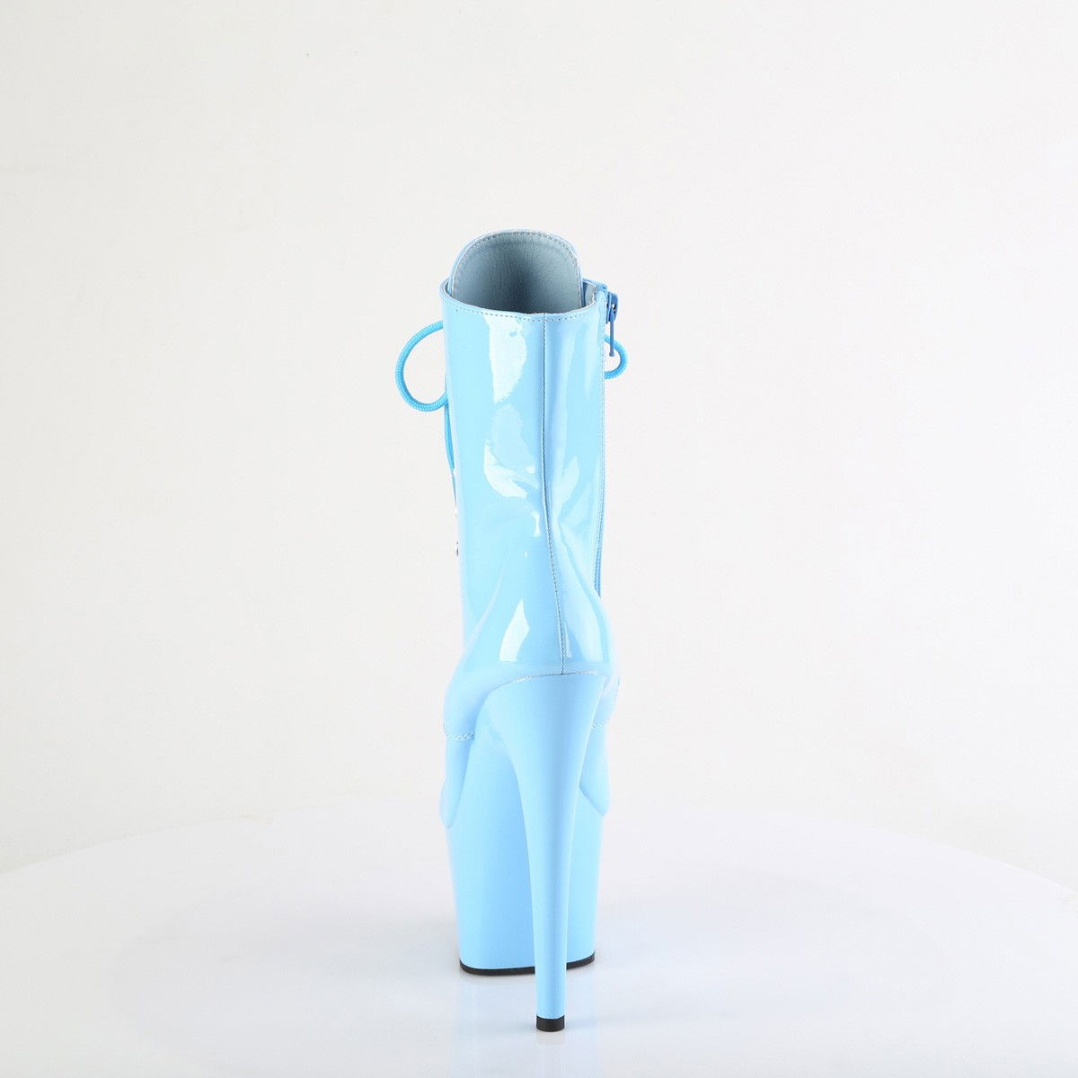 Botine elegante cu platforma inalta, toc inalt, din lac. Botine albastre, cu toc de 17.8 cm. Botine pentru dansatoare si pole dance. Brand Pleaser USA
