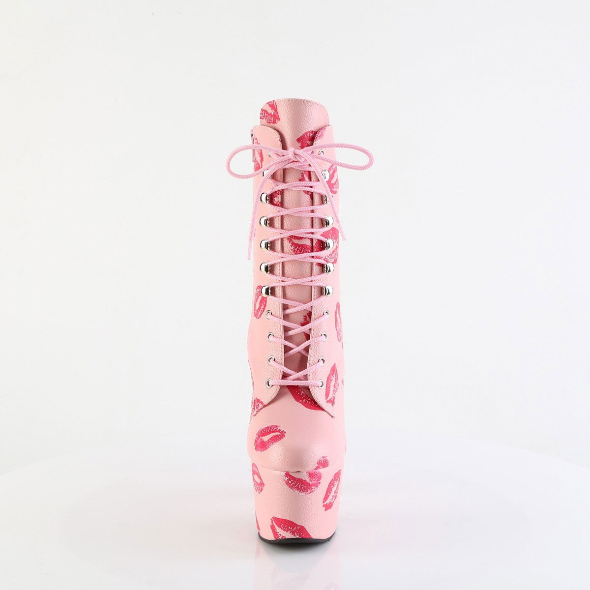 Botine pentru dansatoare, cu toc inalt si platforma inalta, cu model de buze. Brand Pleaser.