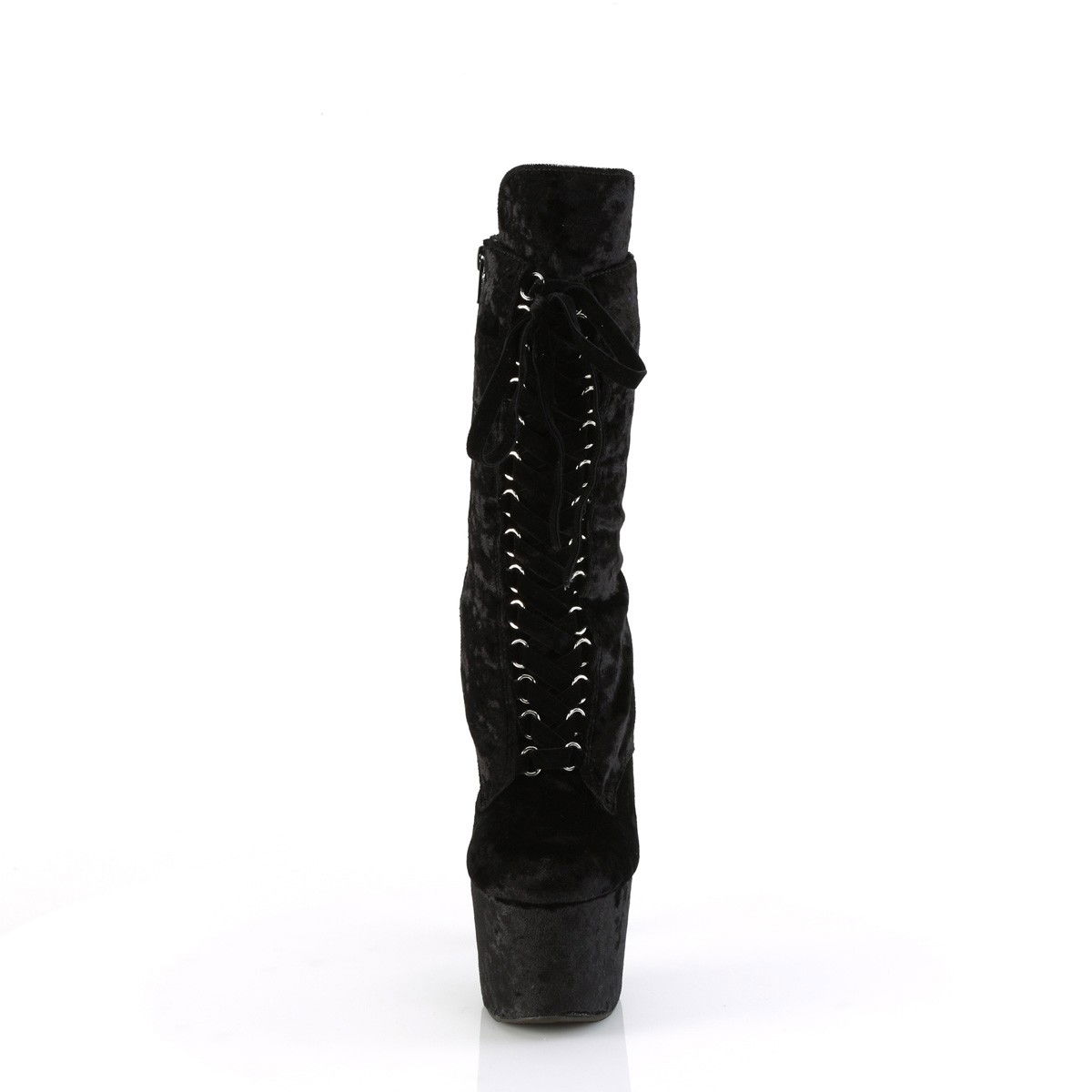 Botine pentru dansatoare, cu toc inalt si platforma, de catifea, cu fermoar pe interior. Acestea vin cu protectii pentru platforma. Brand Pleaser.