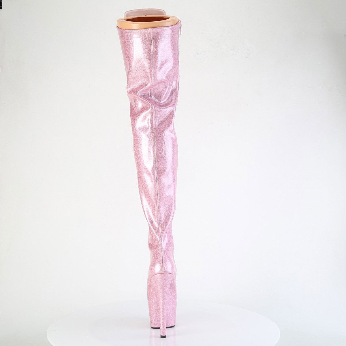 Cizme sclipitoare pentru dansatoare, cu toc inalt si platforma inalta, cu fermoar in interior. Brand Pleaser.