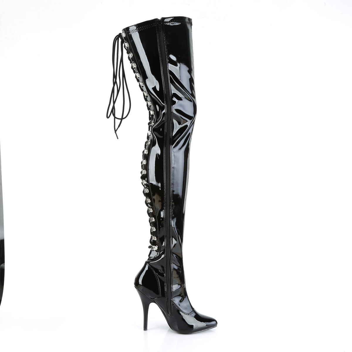 Cizme sexy, de spectacol, peste genunchi, cu siret in spate pentru reglarea grosimii piciorului, marimi 36 - 46