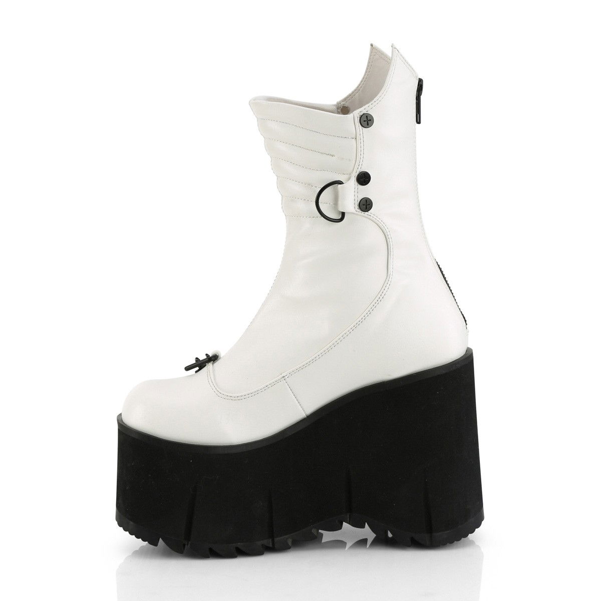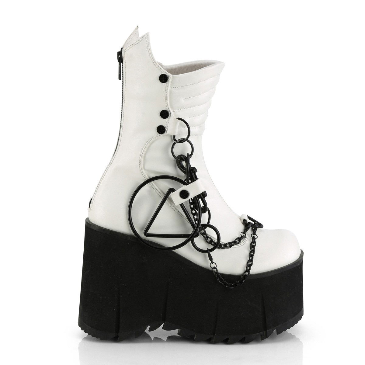 Ghete cu platforma inalta, fara toc, cu accesorii metalice printre care lant si pentagrama, stil gotic, din piele ecologica. Ghetele au fermoar la spate. Brand DemoniaCult