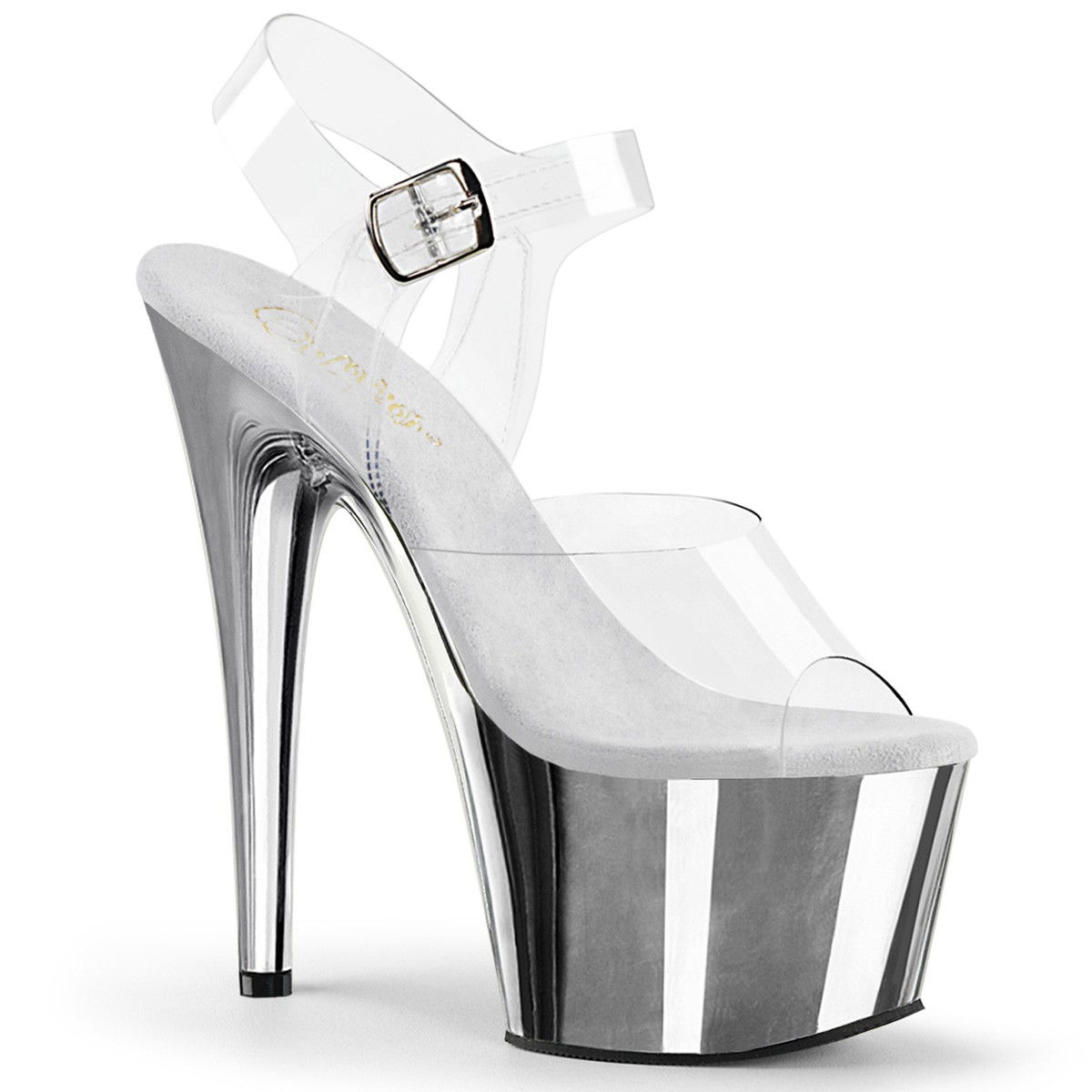 Sandale sexy, senzationale, cu platforma inalta argintie, cu imitatie de piele intoarsa de culoarea alba pe talpa. Sandale pentru dans la bara, poledance. Brand Pleaser
