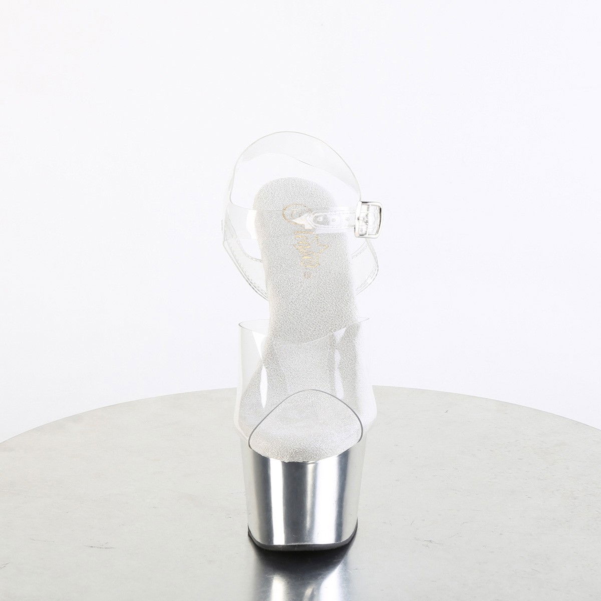 Sandale sexy, senzationale, cu talpa platforma argintie. Papuci de calub, dansatoare