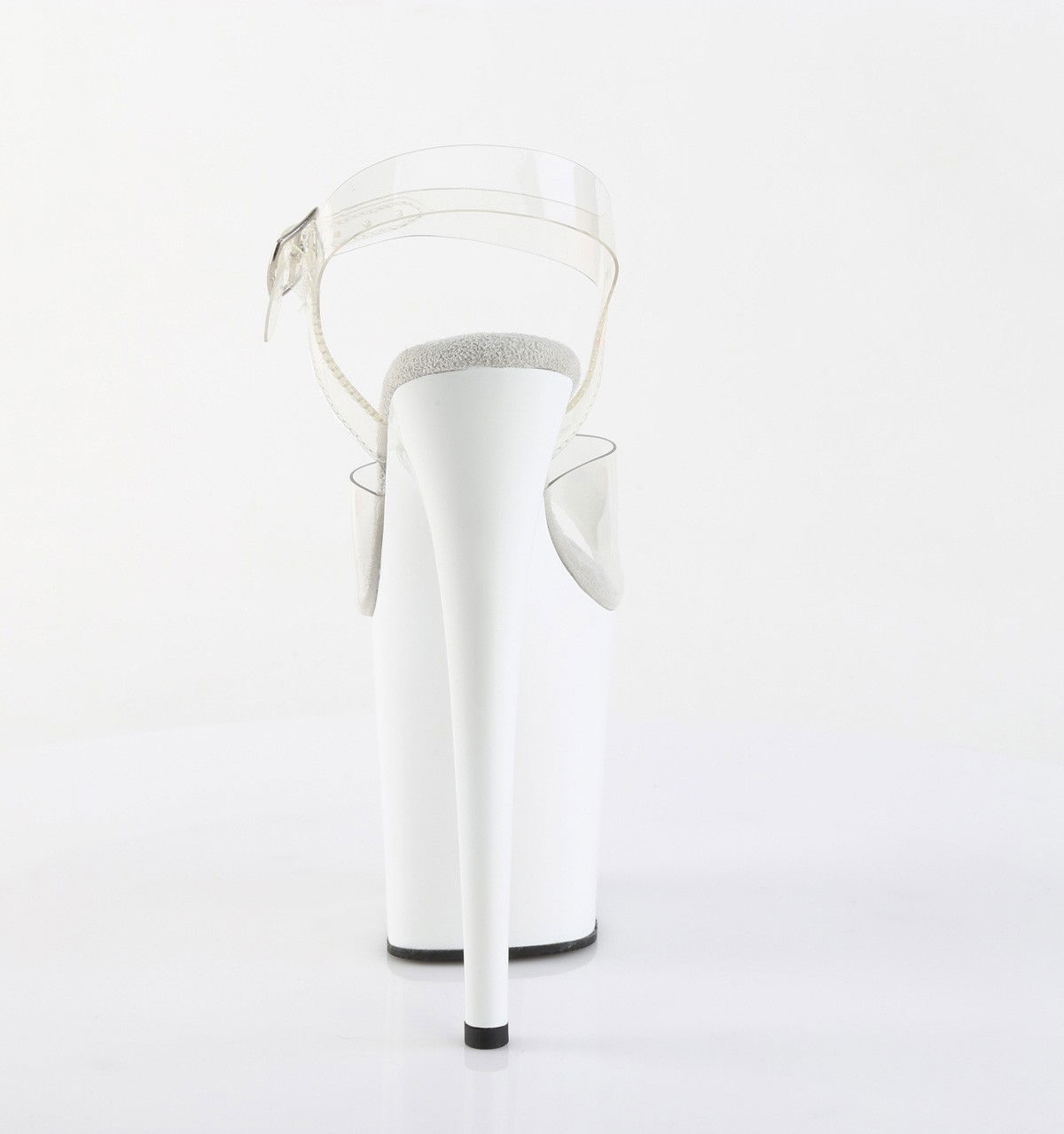 Sandale sexy, cu platforma inalta, alba, pentru dansatoare. Sandale comode, cu toc inalt. Pe talpa au imitatie de piele intoarsa de culoare alba pentru ca piciorul sa nu transpire si sa alunece. Brand PleaserUSA