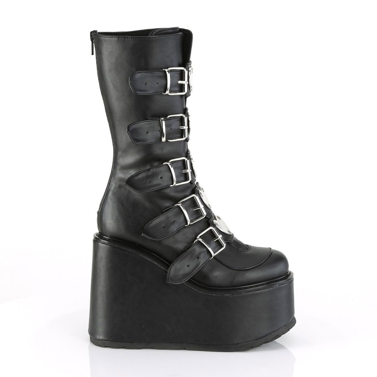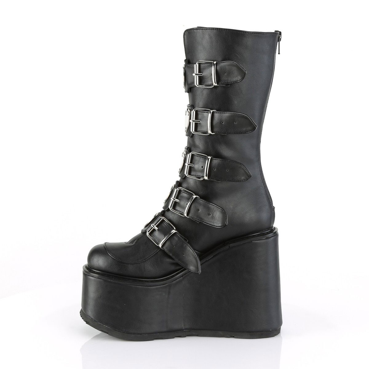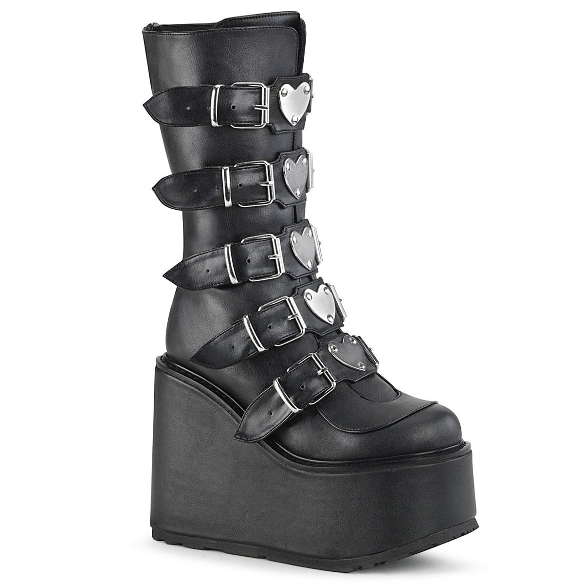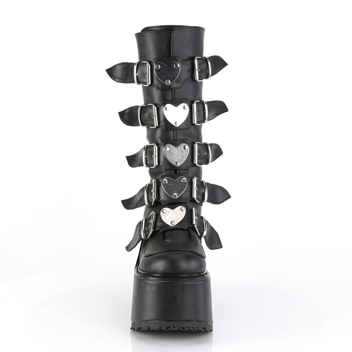 Ghete inalte brand Demonia, stil gotic si Mary Jane, cu talpa ortopedica, cu siret si catarame, detalii metalice in forma de inimioare. Ghete sunt din piele ecologica
