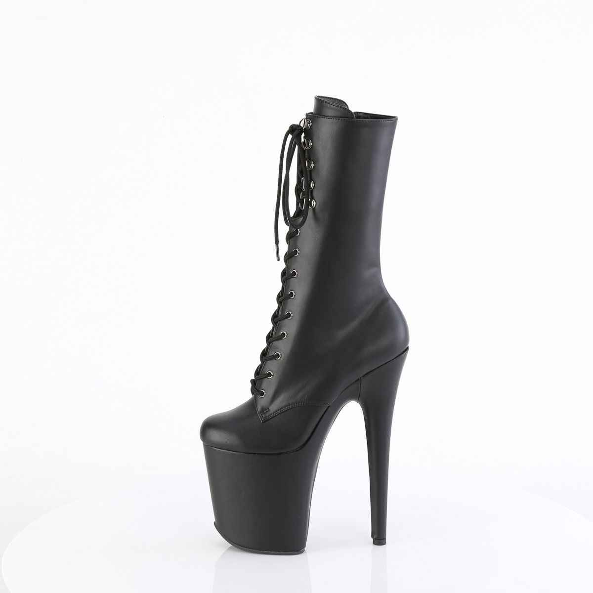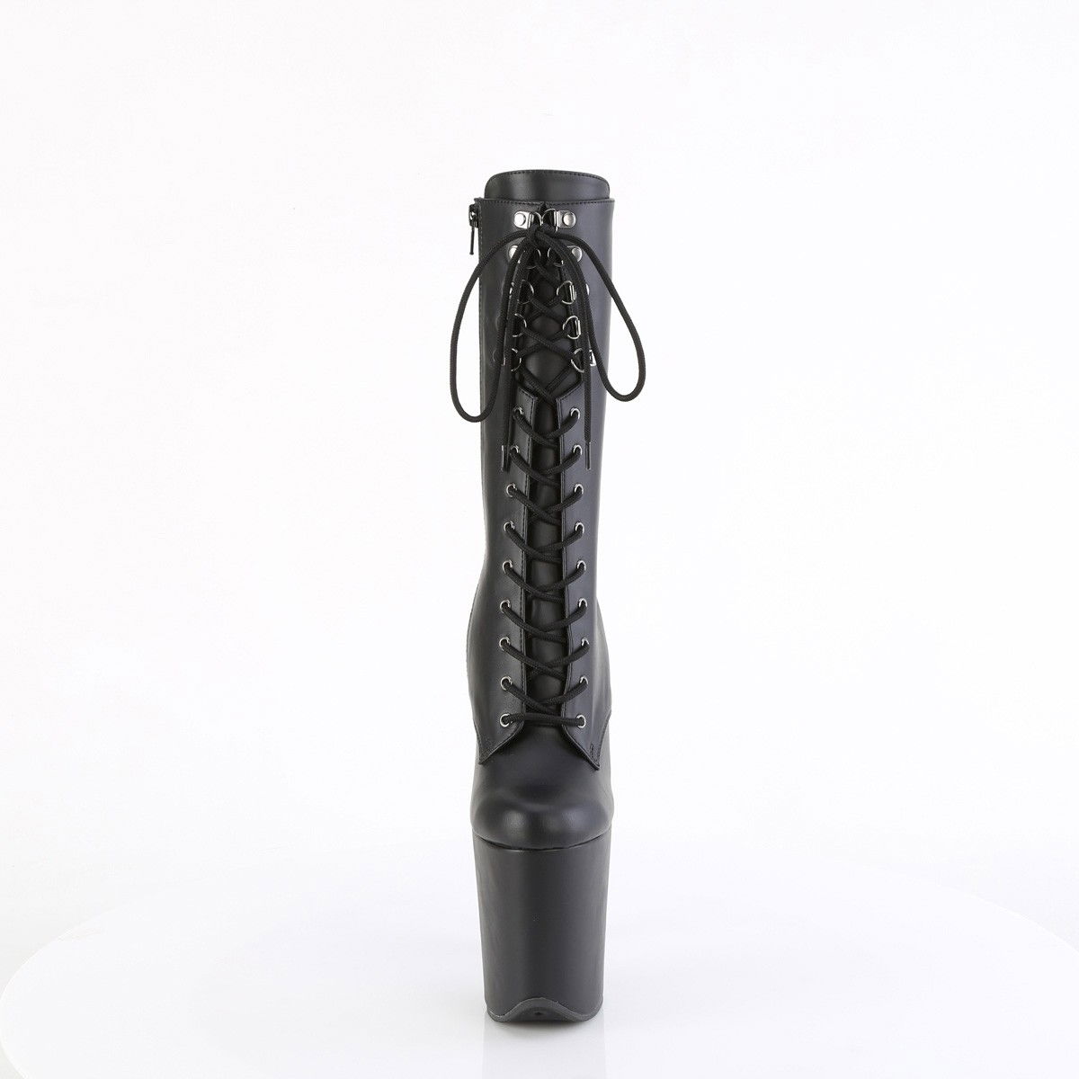 Botine cu toc si platforma inalte, cu siret in fata si fermoar pe interiorul piciorului. Botinele sunt mai inalte pe picior. Brand Pleaser