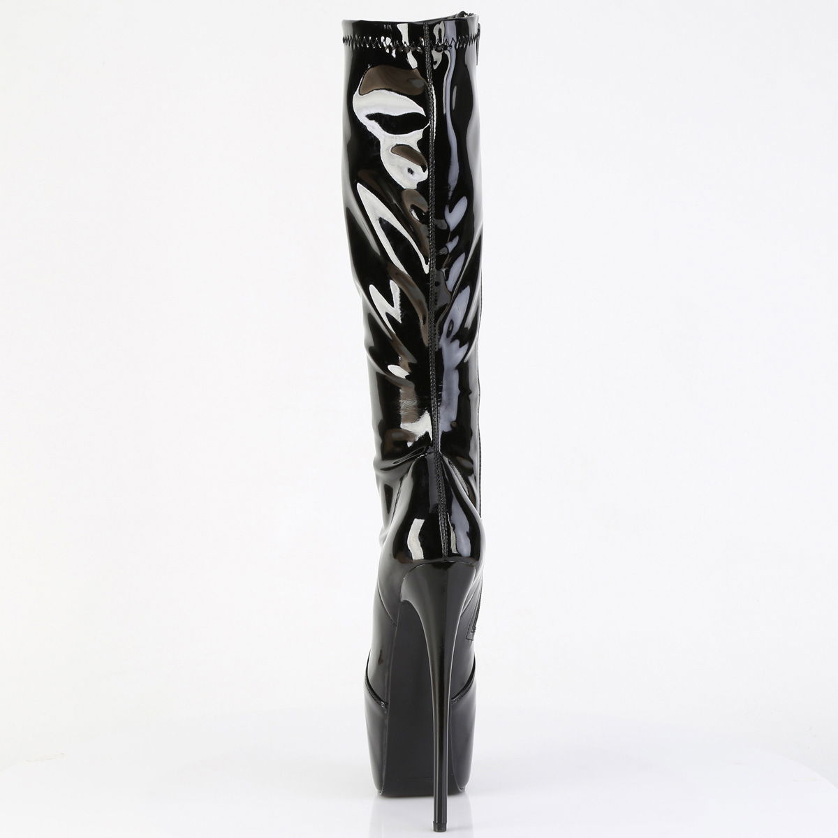 Cizme sub genunchi, mulate, din lac, cu toc inalt si platforma, cu fermoar pe interiorul piciorului. Cizmele au toc de 17.8 cm si platforma de 7.6 cm. Cizmele Jubilant 2000 vor face din dansatoarea care le poarta senzatia serii. Sunt perfecte pentru poledance si dans la bara.