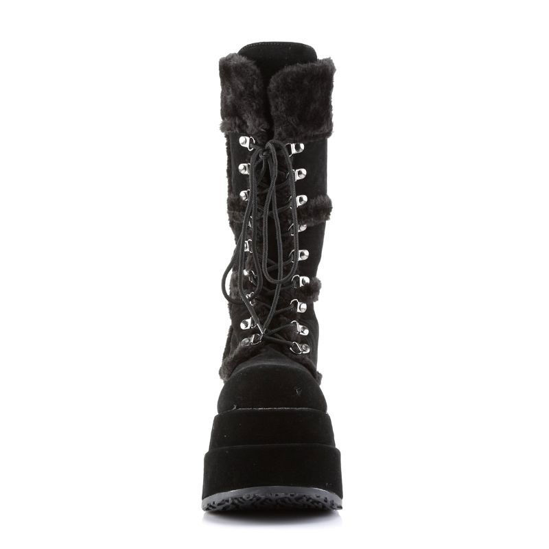 Cizme pana la genunchi cu platforma inalta, din imitatie de piele intoarsa, cu blanita, DemoniaCult BEAR 202
