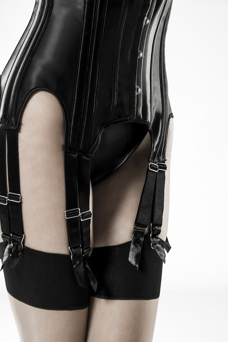Corset sub sani realizat din satin de inalta calitate, cu panglici portjartier si oase pentru a se mula perfect pe corp. La spate se incheie cu siret. Chilotul este inclus in set, dar nipple-urile nu sunt incluse