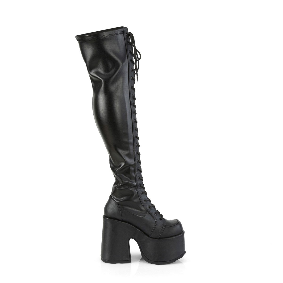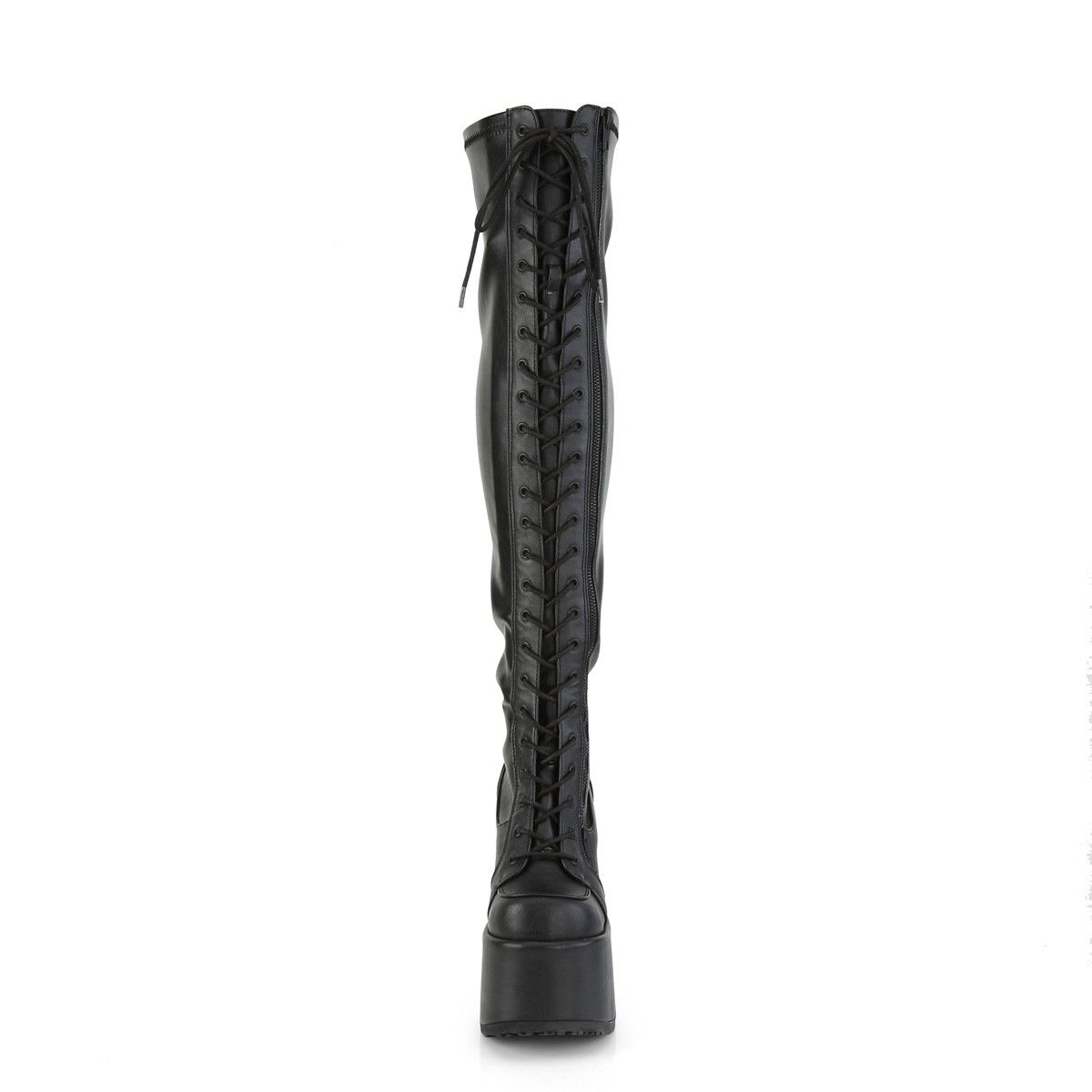 Cizme inalte, peste genunchi, din piele ecologica. Cizme cu platforma si toc gros, brand DemoniaCult
