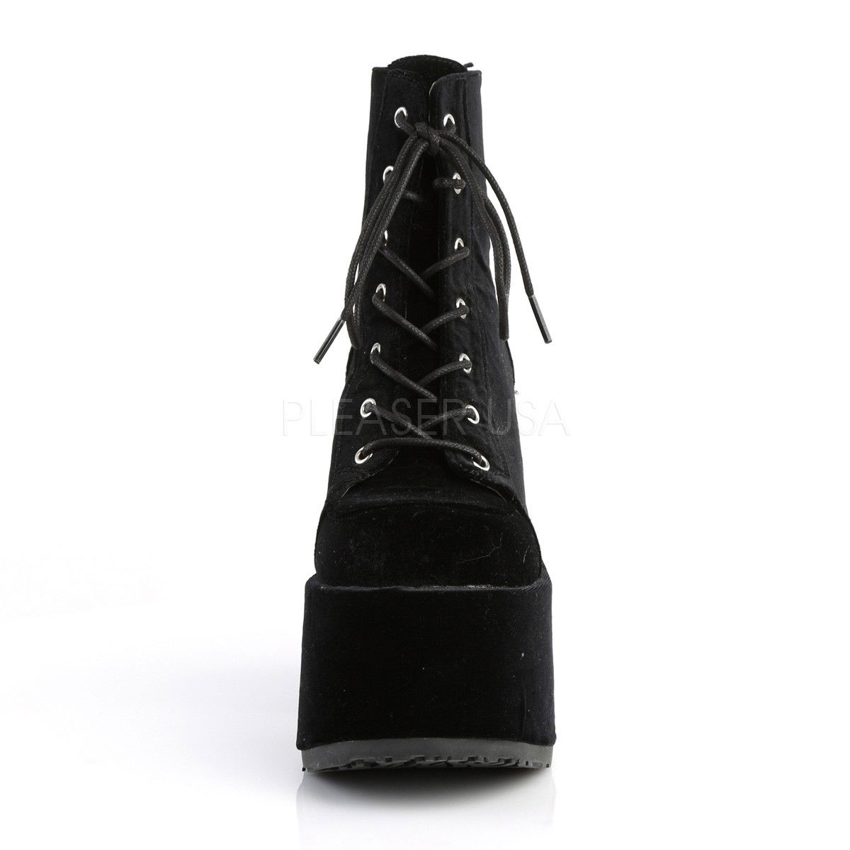 Ghete din catifea, cu toc gros si platforma inalta, cu siret in fata stil gotic, brand DemoniaCult
