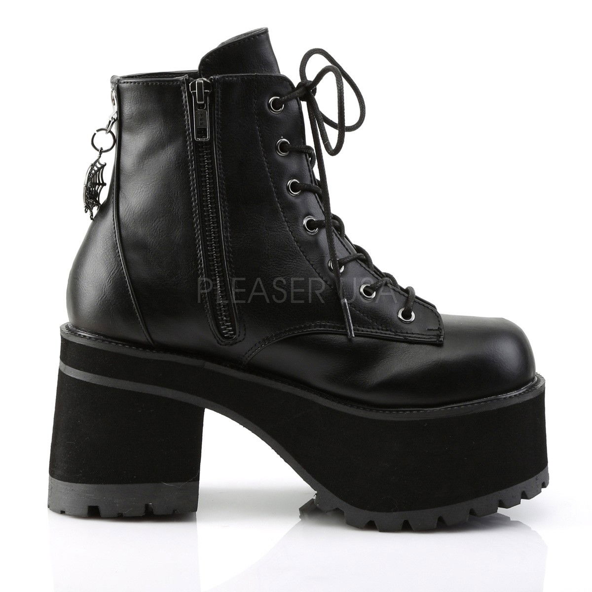 Ghete cu siret in fata, cu platforma si toc gros, stil gotic, punk, gogo, din piele ecologica, cu fermoar pe interior, model panza de paianjen Brand Demonia