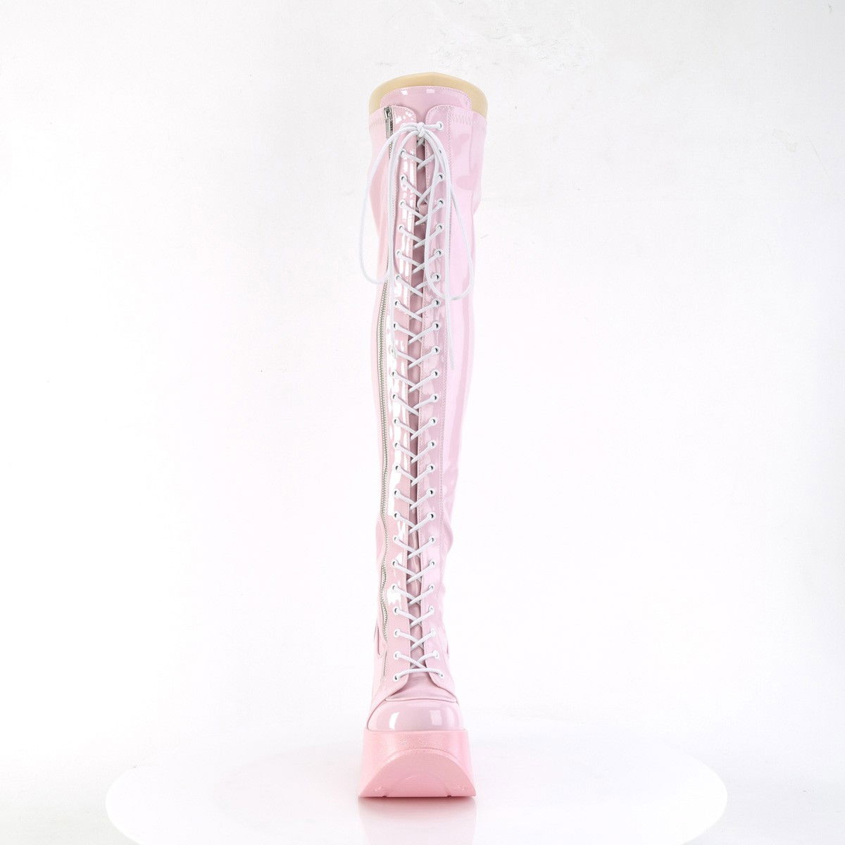 Cizme stil gotic, cu o stea decupata in talpa, peste genunchi, fermoar pe interiorul piciorului. Au talpa ortopedica. Brand Demonia