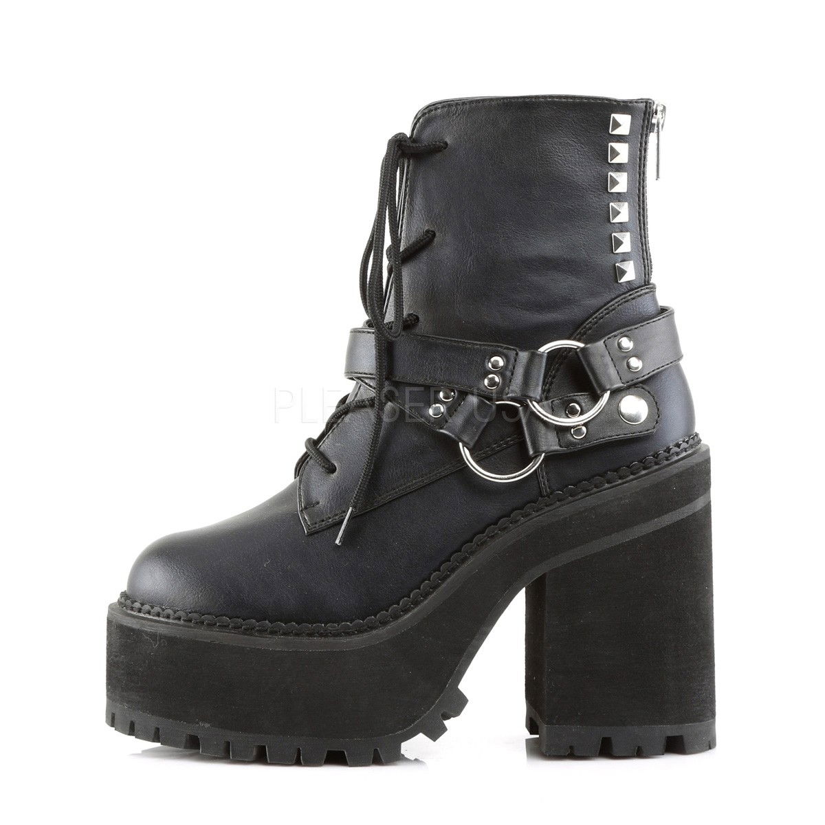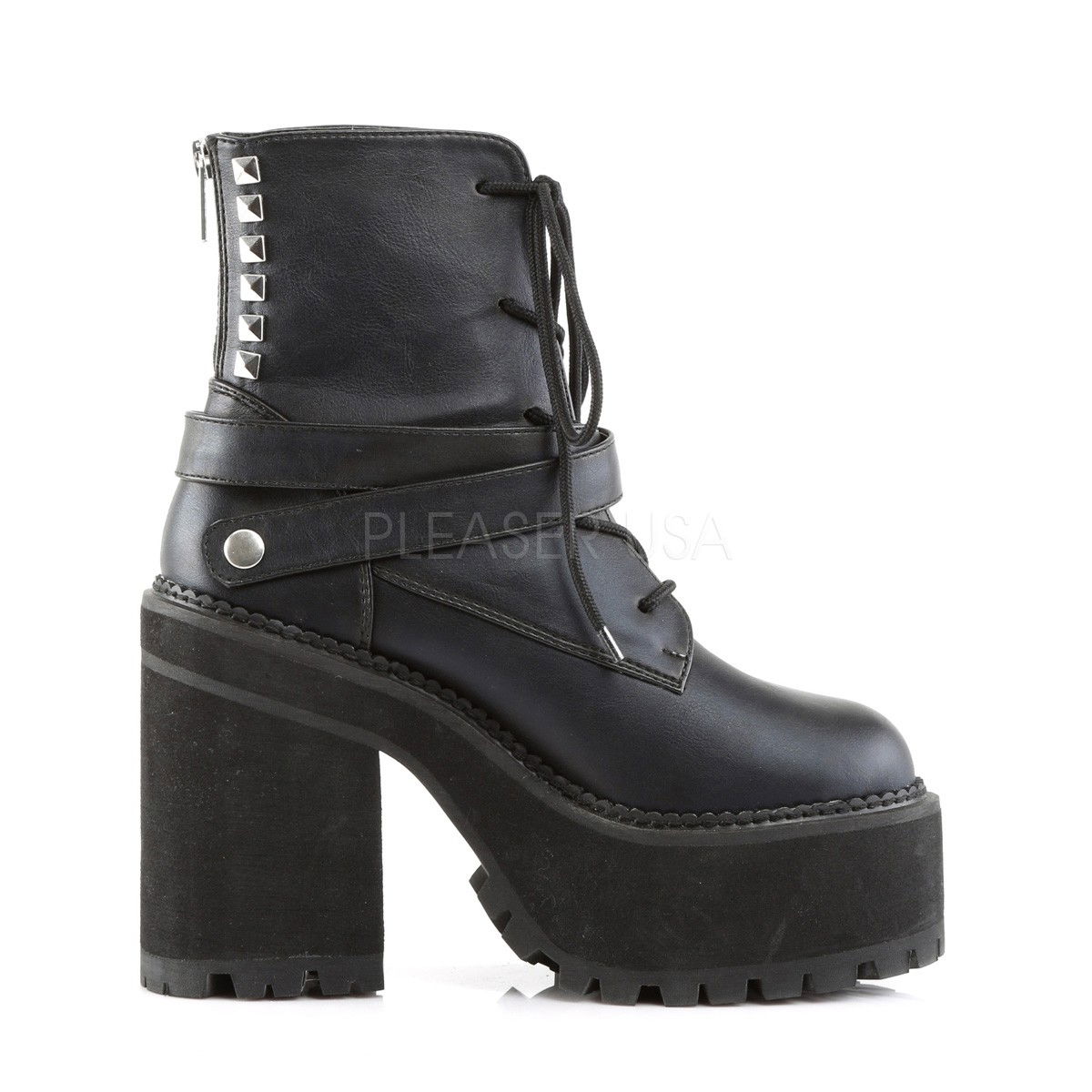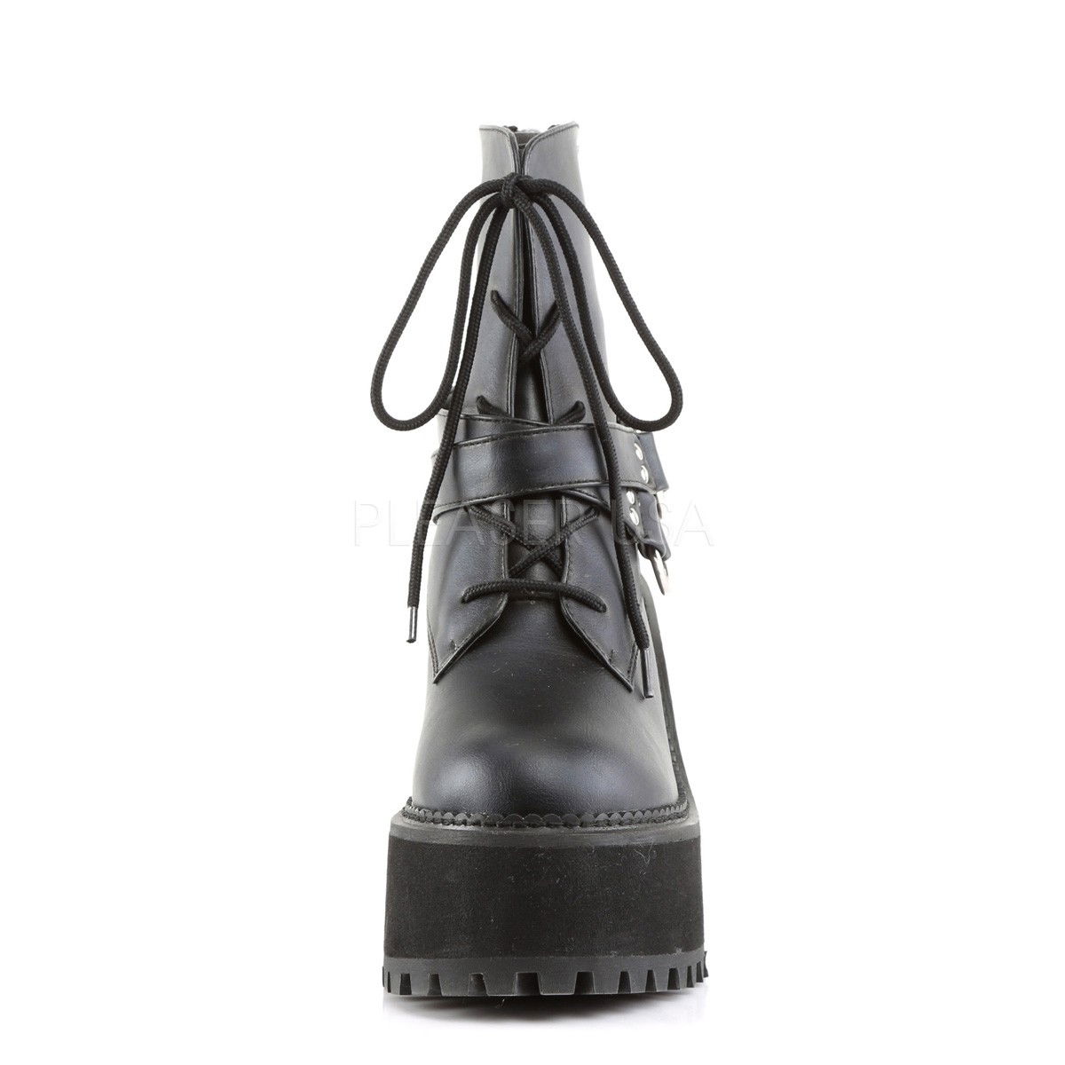 Ghete stil gotic, cu toc si platforma medie, cu siret, fermoar pe spate, cu curele. Ghete brand Demonia