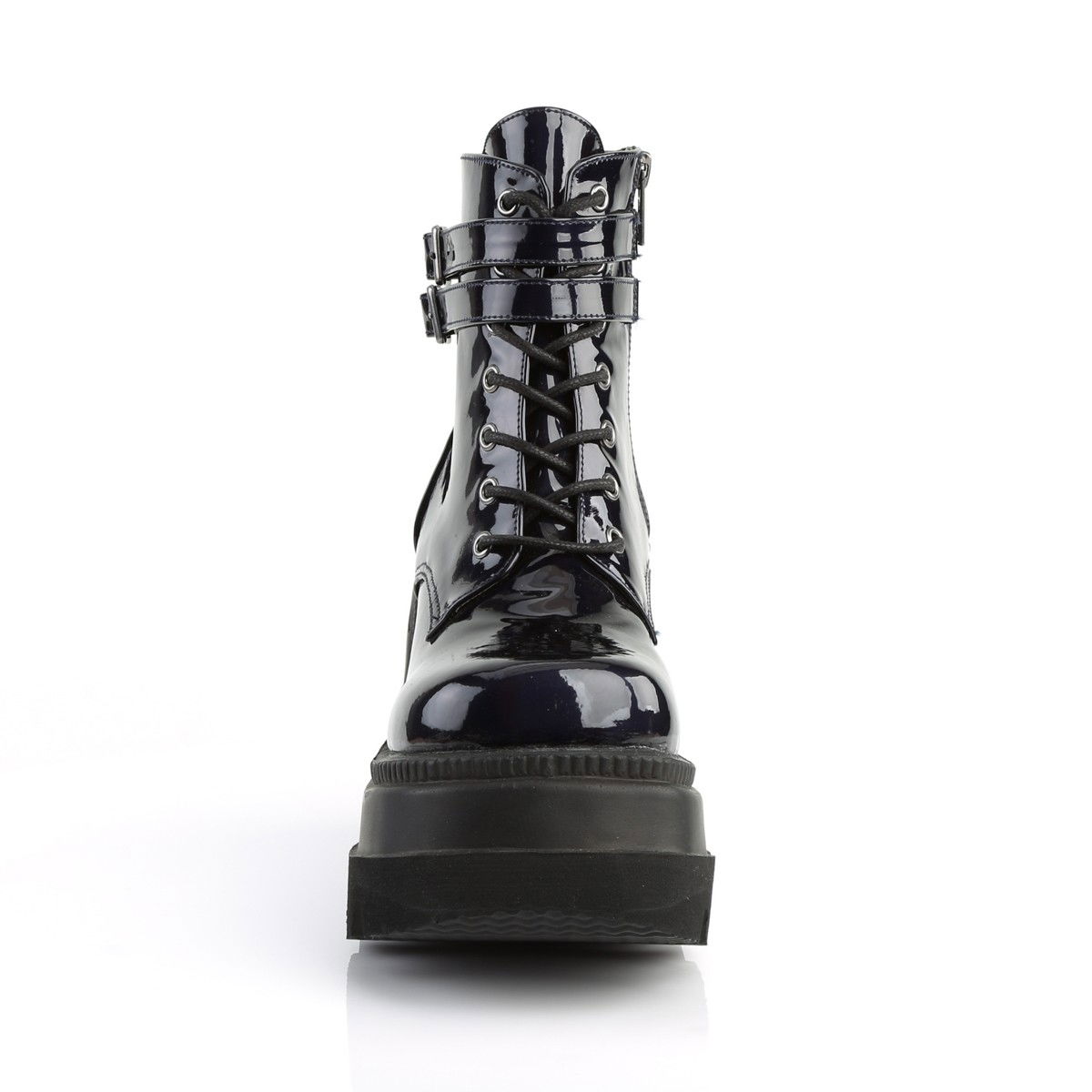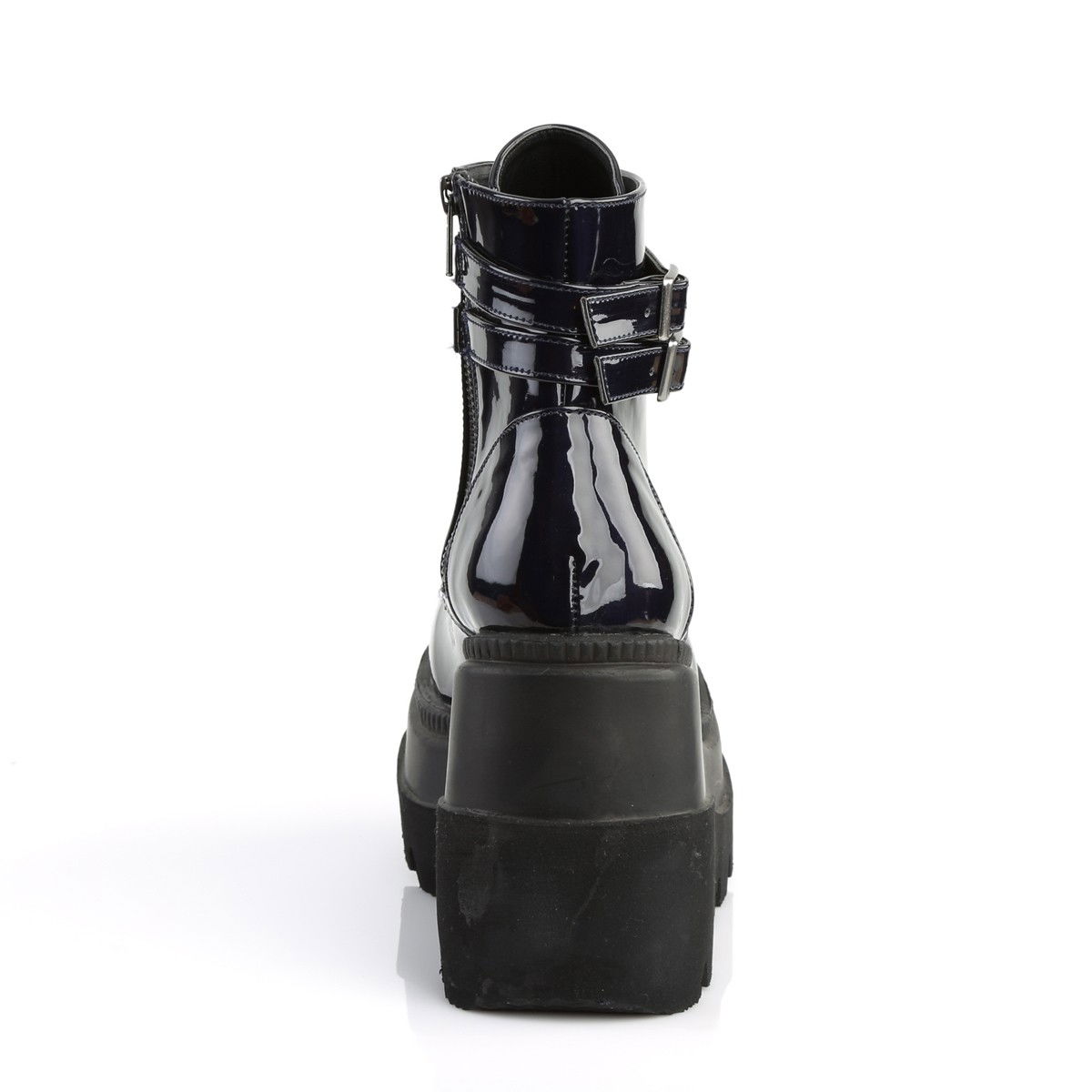 Ghete cu talpa ortopedica, stil gotic, din piele ecologica holograma, cu fermoar pe interior. Brand Demonia