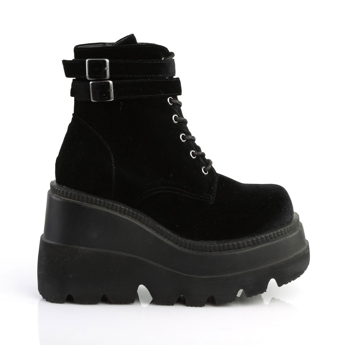 Ghete cu talpa ortopedica, stil gotic, din catifea, cu fermoar pe interior. Brand Demonia