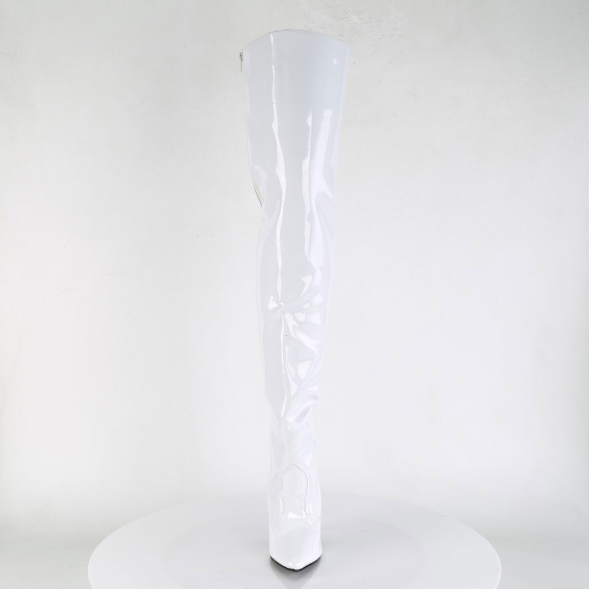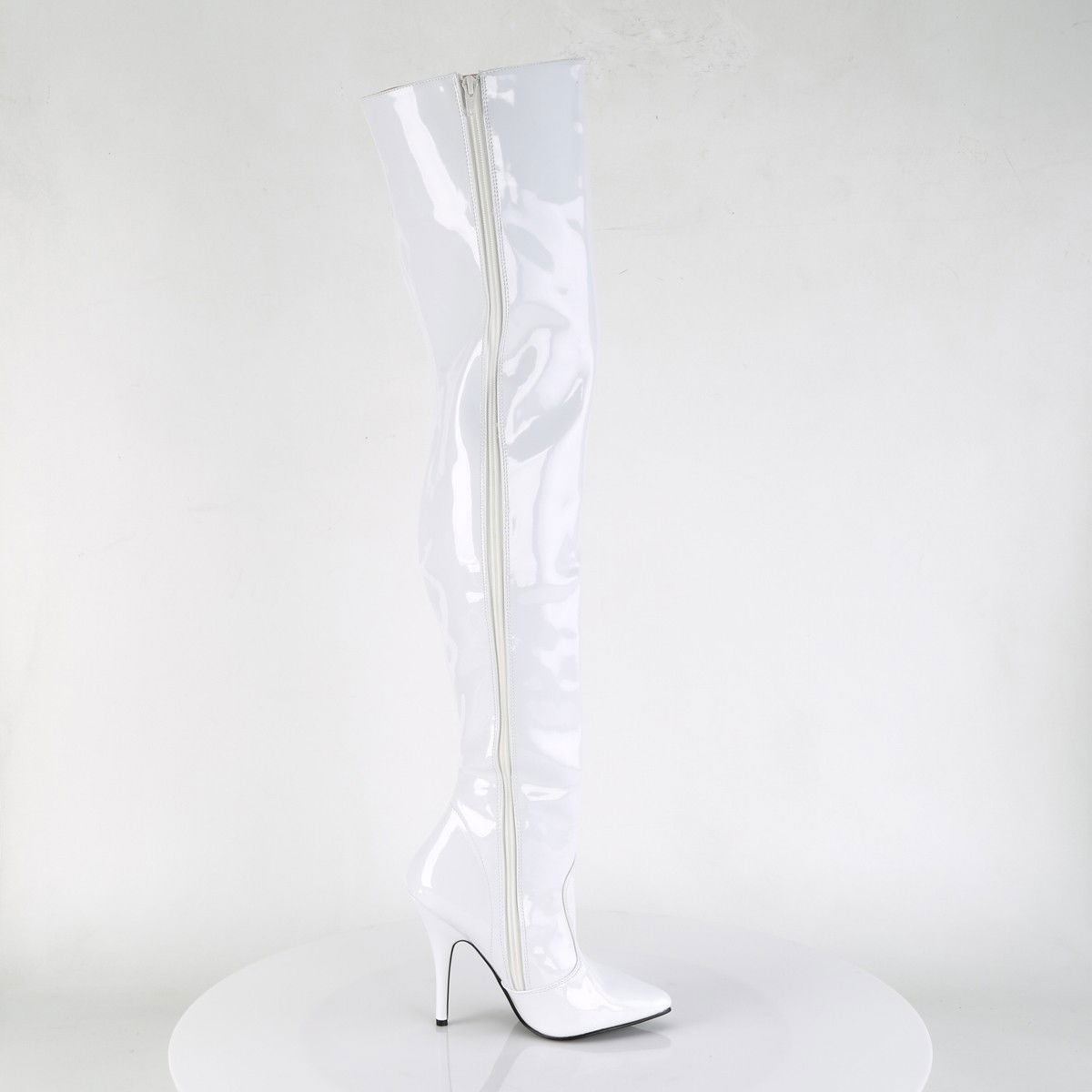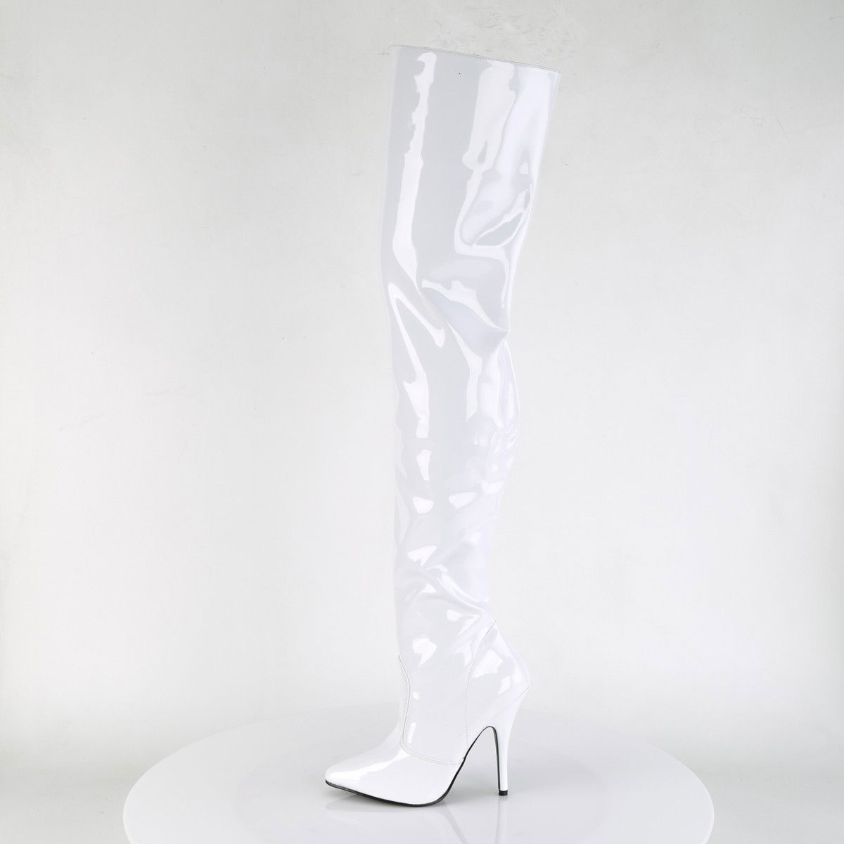 Cizme sexy, de spectacol, peste genunchi, din lac, alb, marimi mari