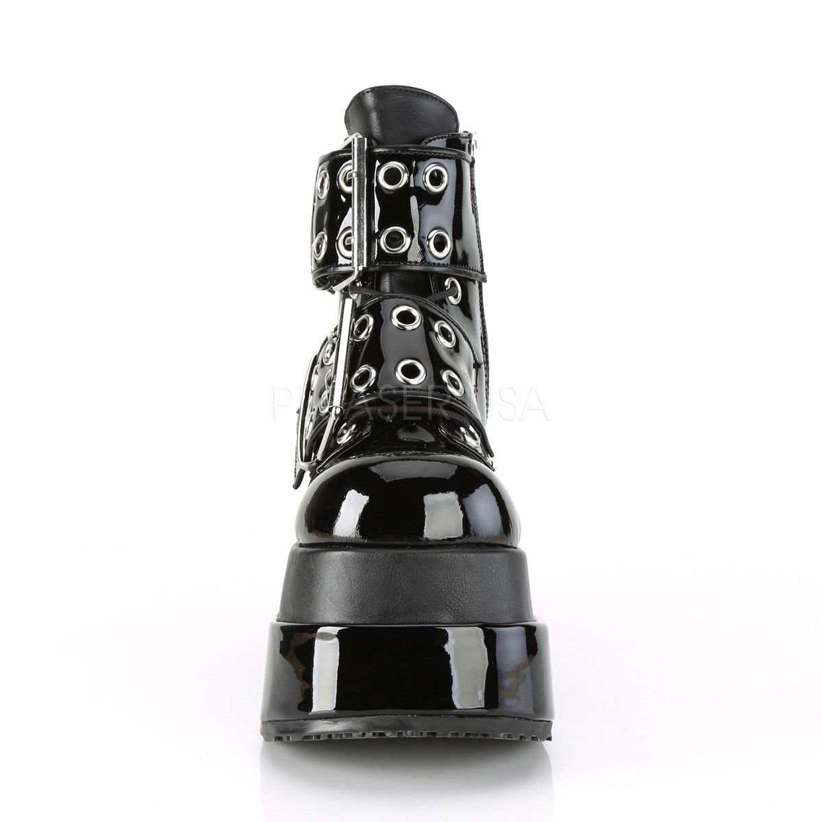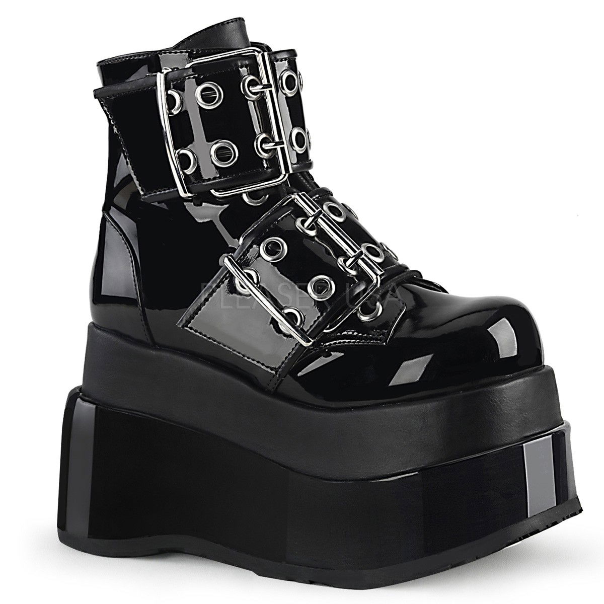 Ghete cu talpa lata, stil gotic, cu catarame late. Din lac. Brand Demonia