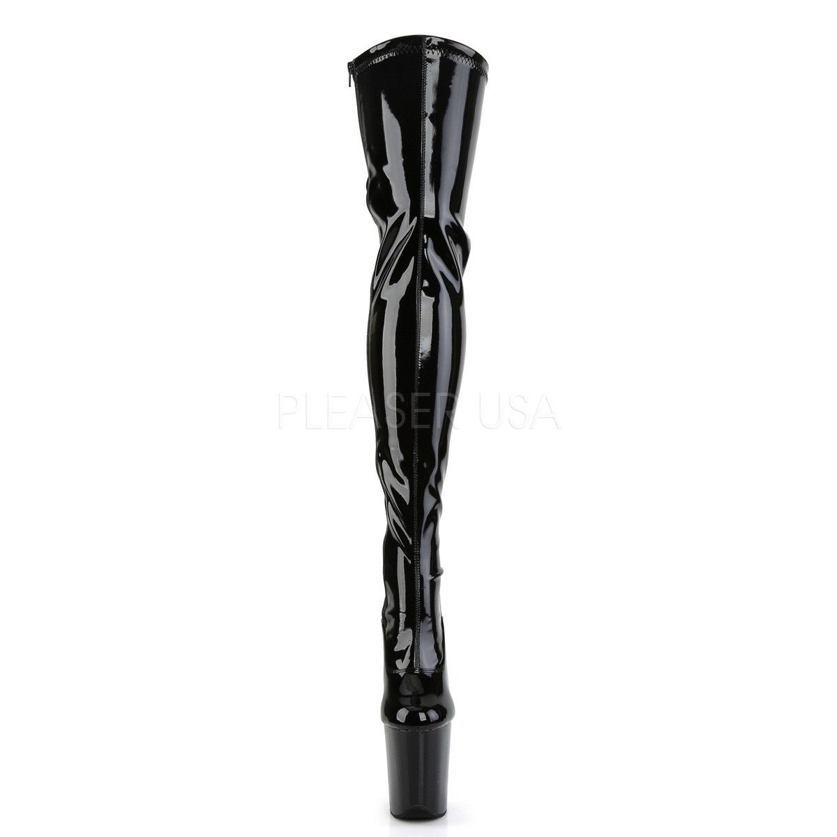 Cizme peste genunchi, din lac, cu siret la spate si fermoar pe interior. Brand Pleaser