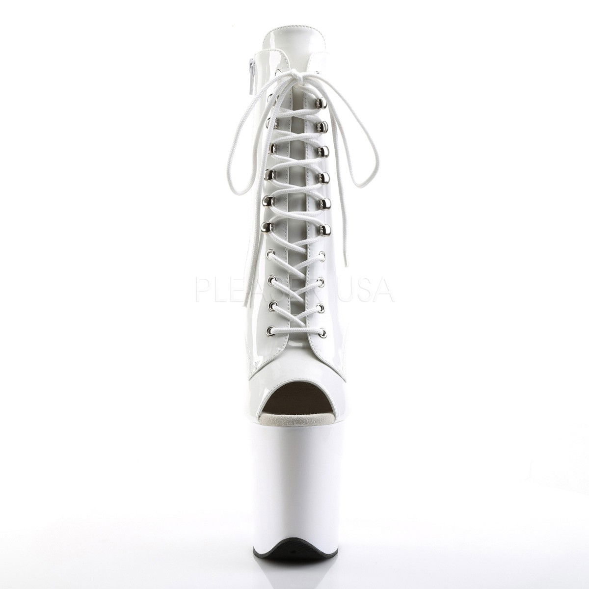 Botine cu platforma inalta, pentru dansatoare, cu siret in fata si varful decupat. Botine cu fermoar pe interior, foarte comode