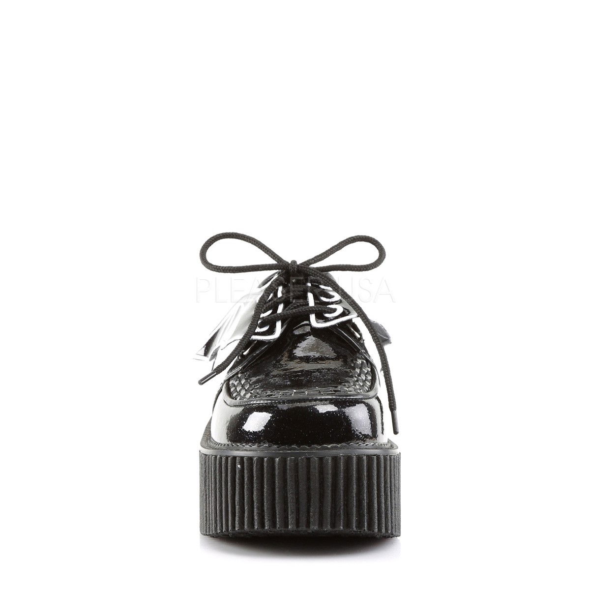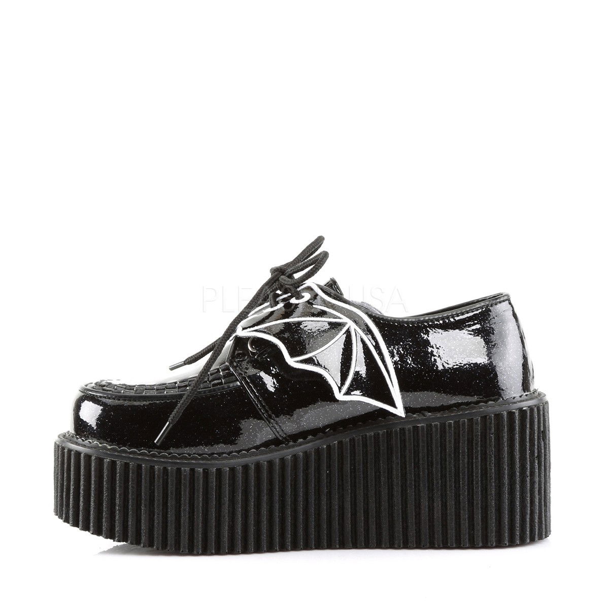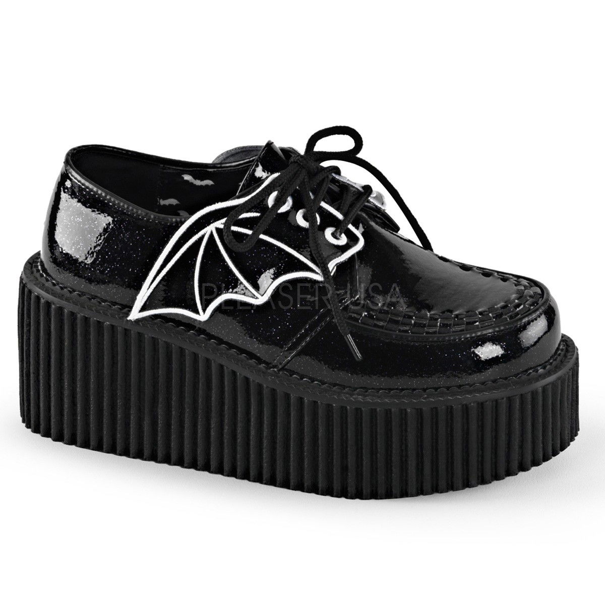 Pantofi cu talpa lata, usor ortopedica, cu aripi de liliac, lac, gothic. Brand Demonia