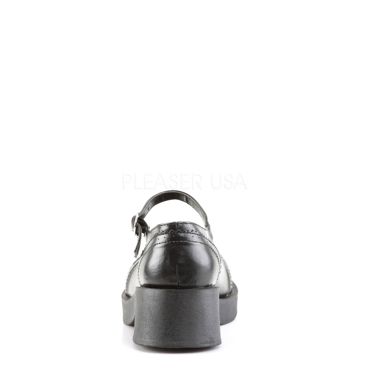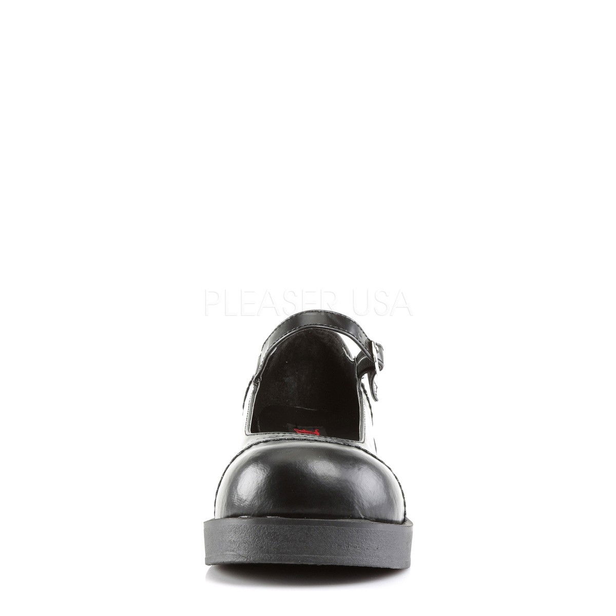 Pantofi fara toc, cu bareta, cu toc mic, toc gros, stil gotic, Brand Demonia