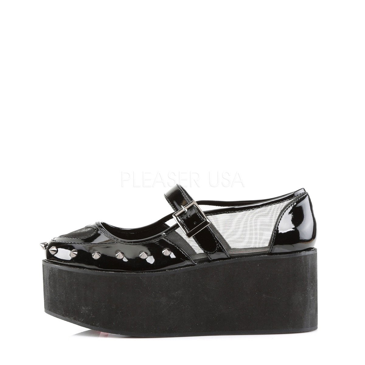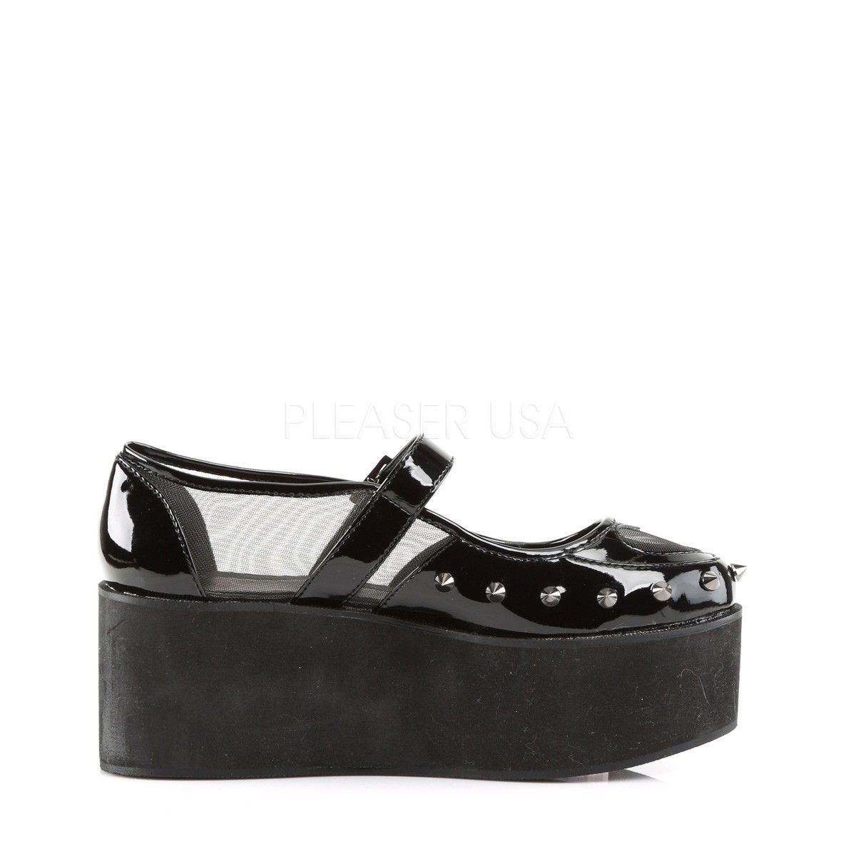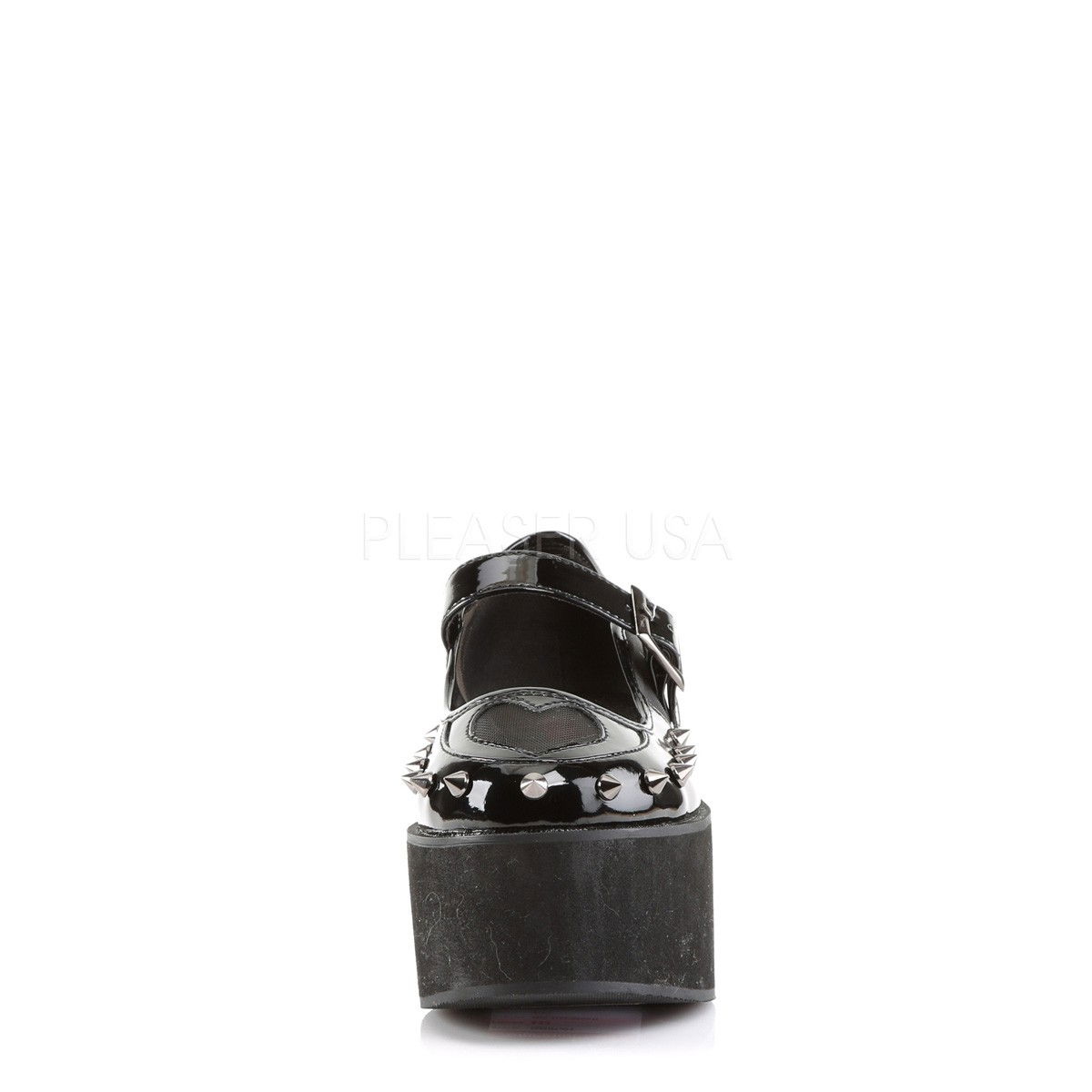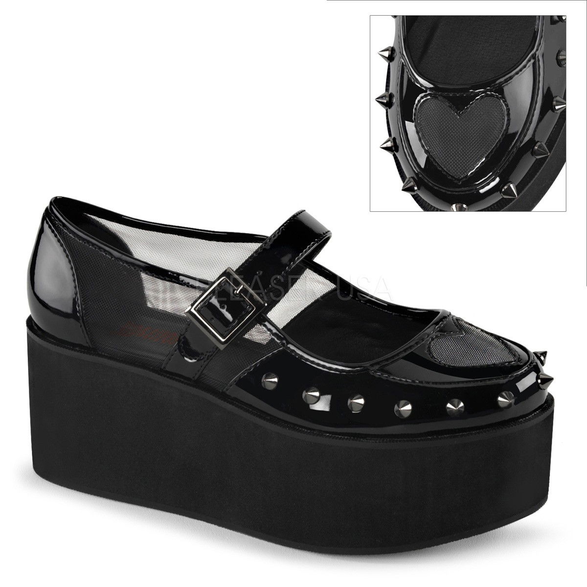 Pantofi cu platforma Mary Jane, cu plasa, cu insertii metalice. Brand Demonia