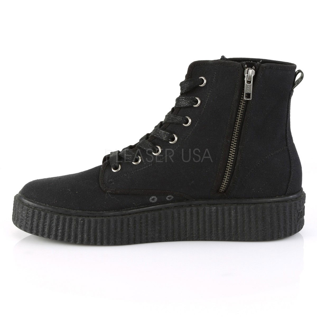 Ghete stil creeper, cu talpa putin inalta, cu siret, din panza, cu fermoar pe interior. Brand DemoniaCult