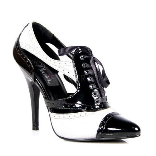 Pantofi office, eleganti. Pantofi alb cu negru decupati. Brand Pleaser USA