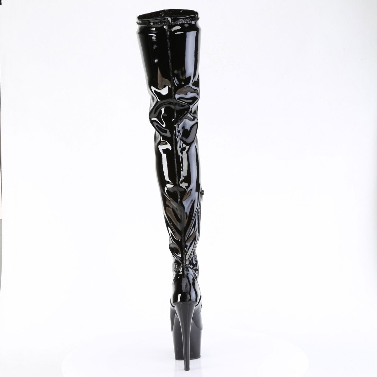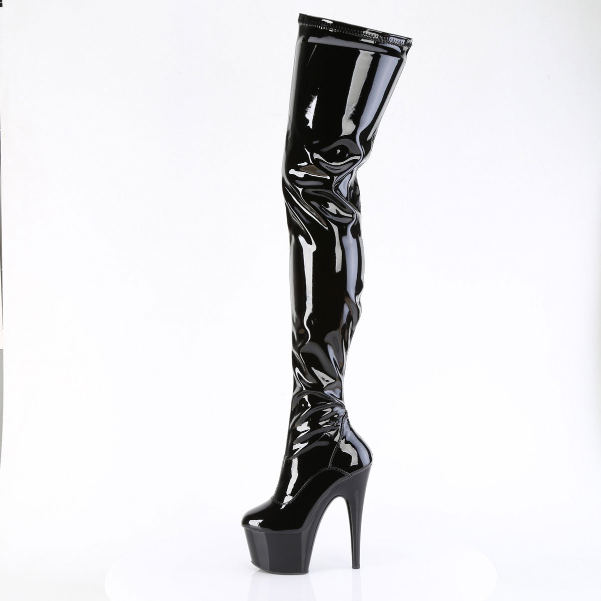 Cizme lungi peste genunchi, sexy, cu platforma inalta. Cizmele au fermoar scurt pe interiorul piciorului. Cizmele Adore 4000 sunt pe marimi mari, pana la marimea 44. Cizme brand Pleaser USA