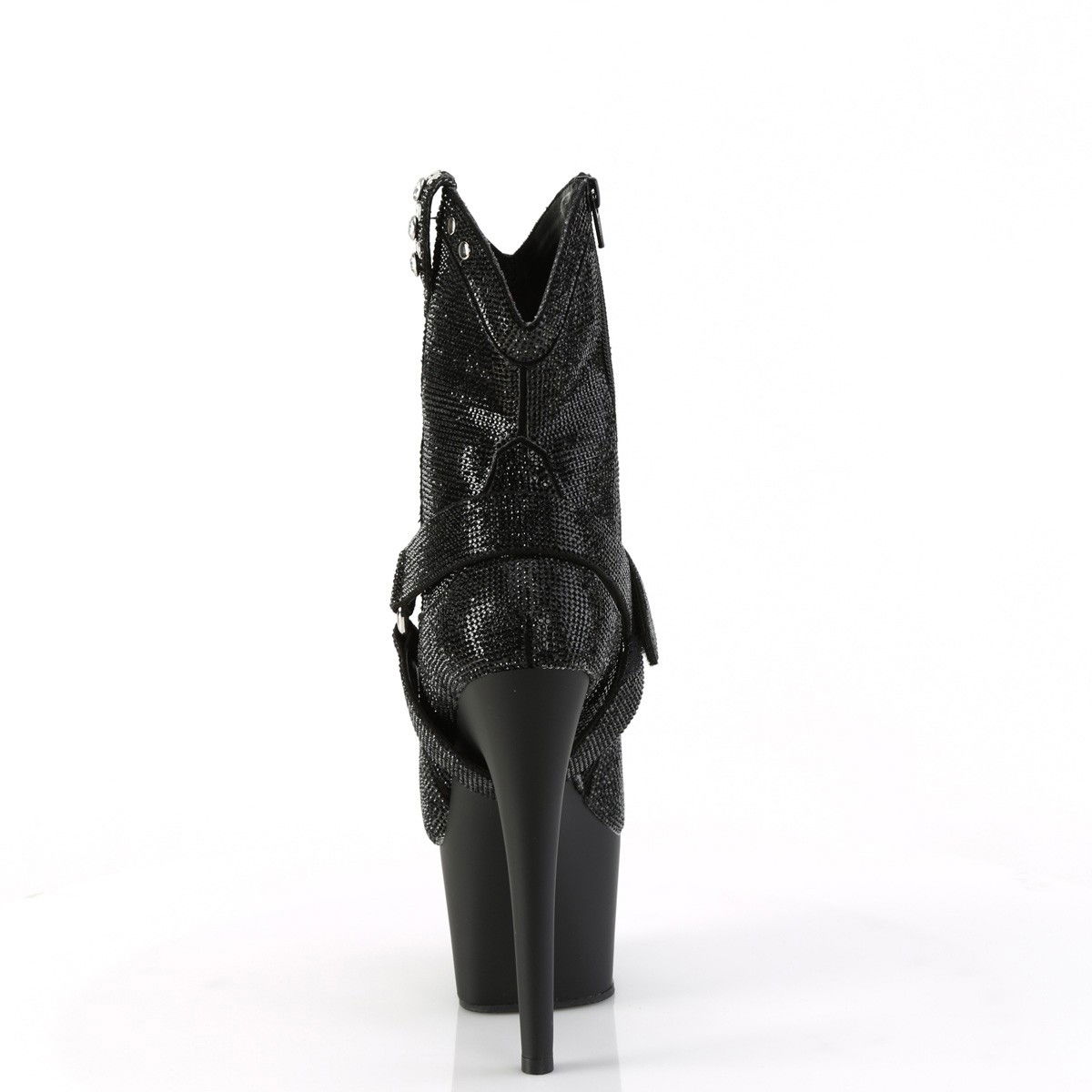 Botine cu platforma inalta si toc inalt, pentru dansatoare. Botine decorate cu pietricele ornamentale, cu fermoar pe interior. Brand Pleaser USA