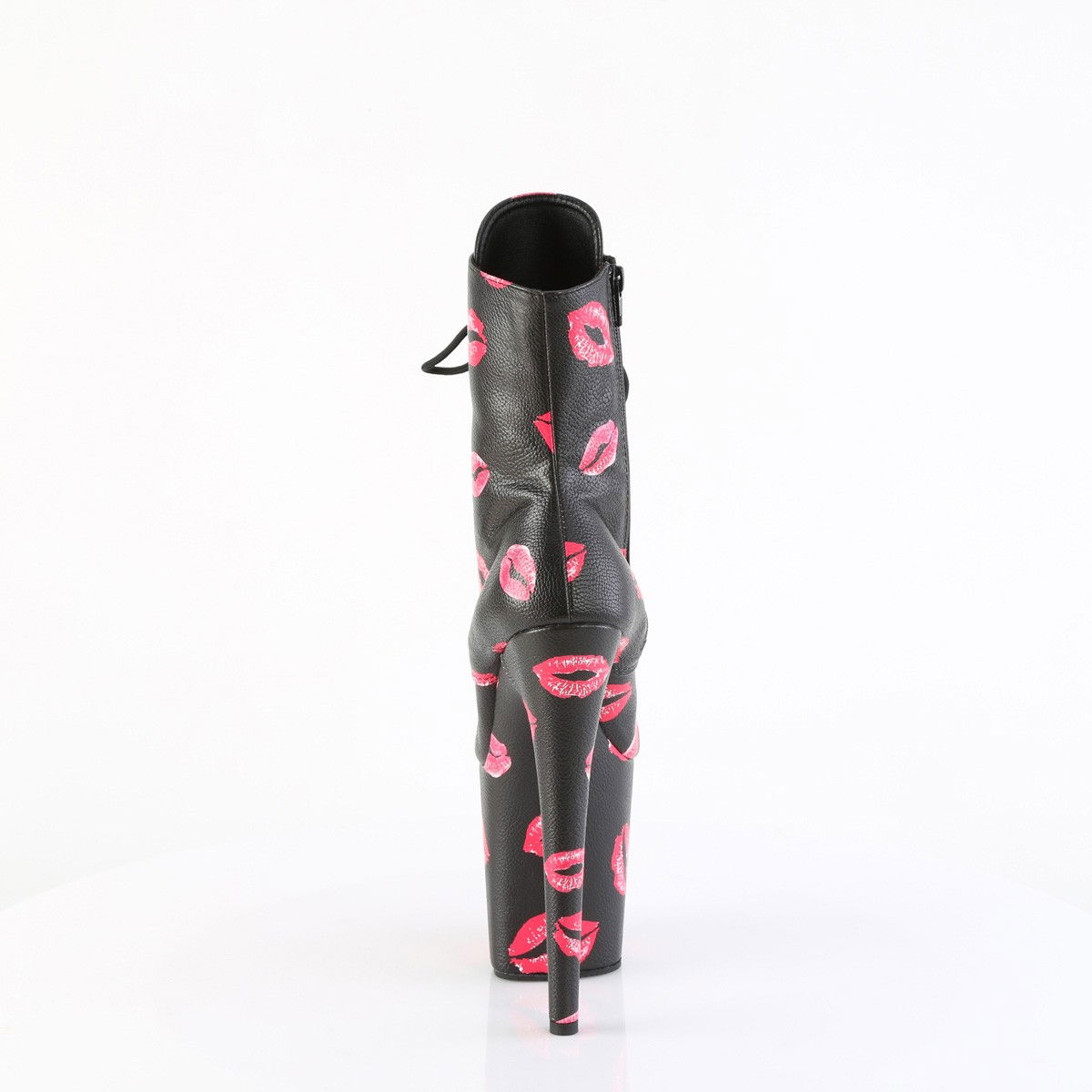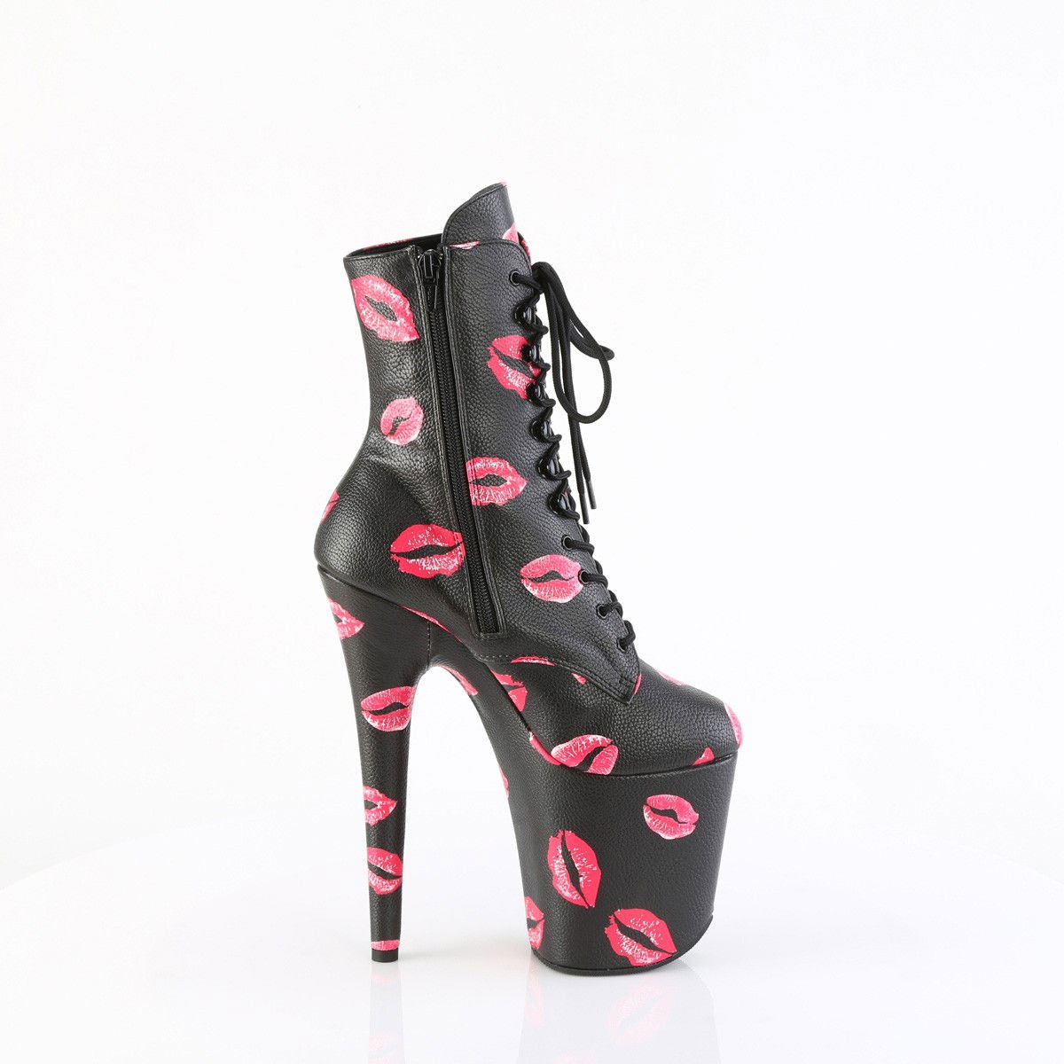 Botine pentru dansatoare, cu toc inalt si platforma inalta, cu model de buze.