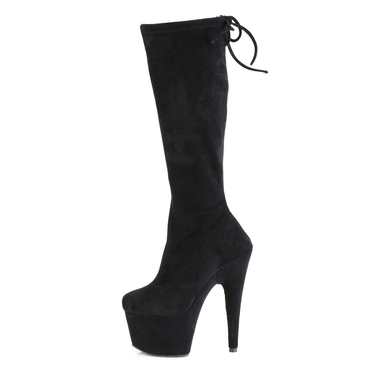 Cizme cu platforma inalta, din lac, sub genunchi, mulate pe picior