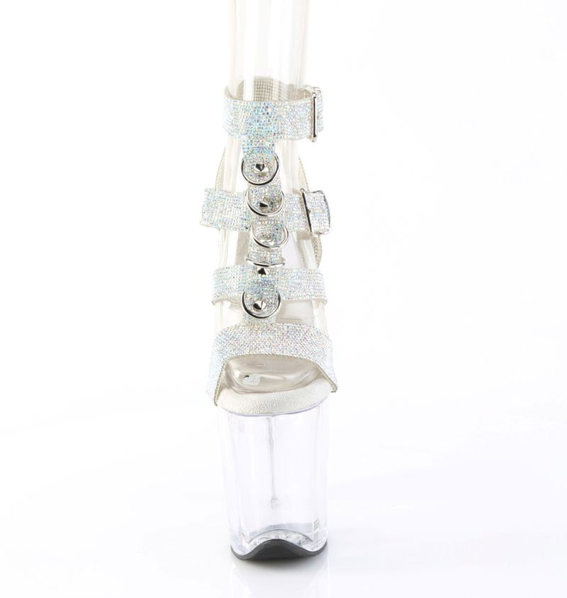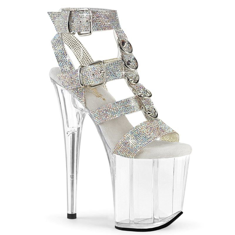 Pleaser USA Sandale transparente cu platformă și pietricele FLAMINGO 856 RS (toc de 20 cm), Pleaser