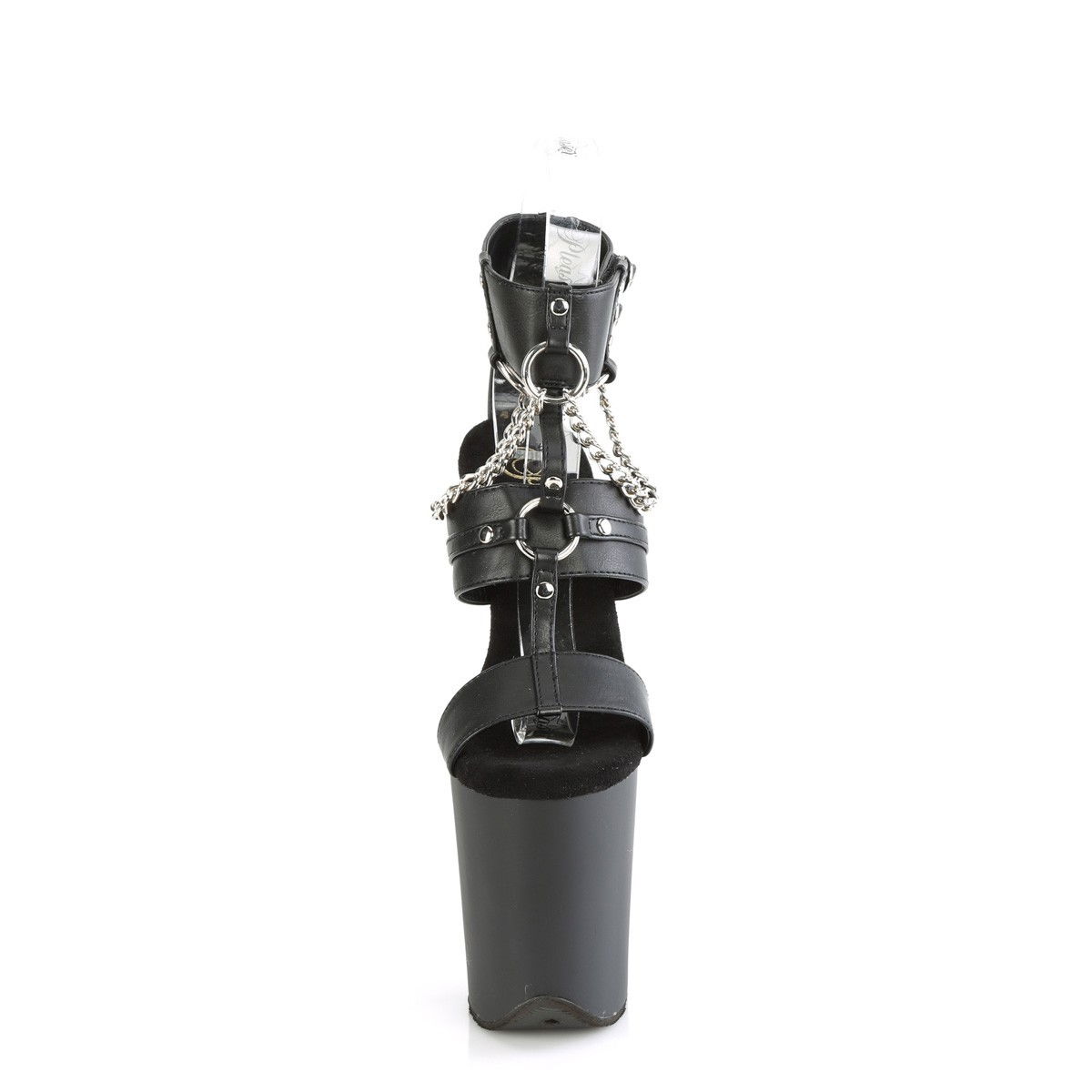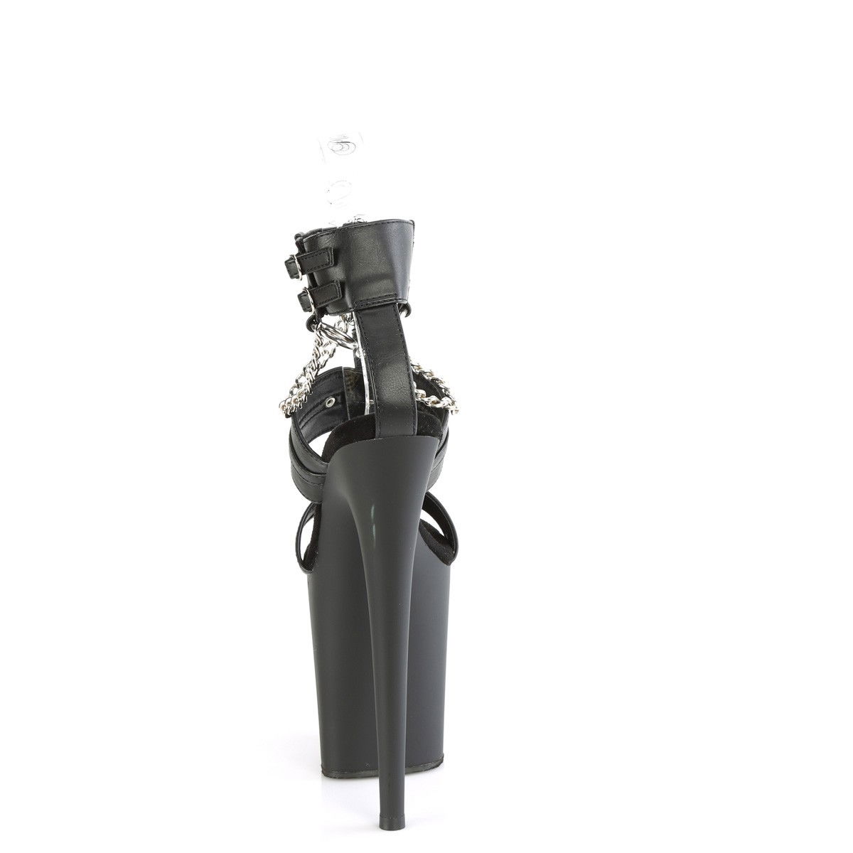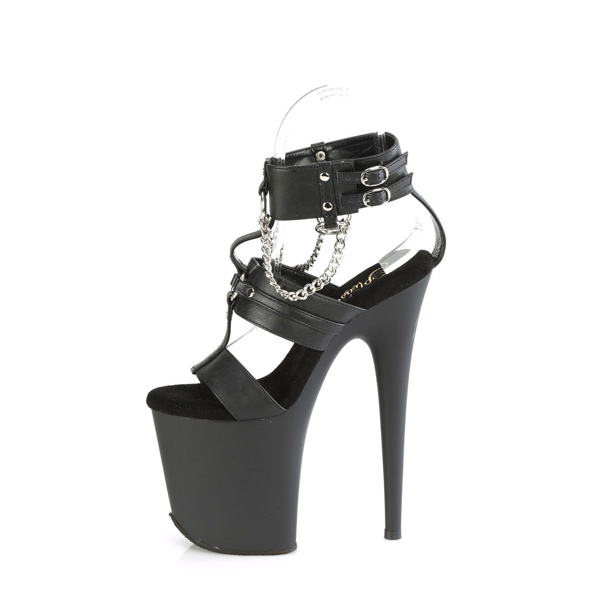 Sandale pentru dansatoare, cu toc inalt si platforma inalta, cu bareta la glezna cu lanturi si inele. Brand Pleaser.