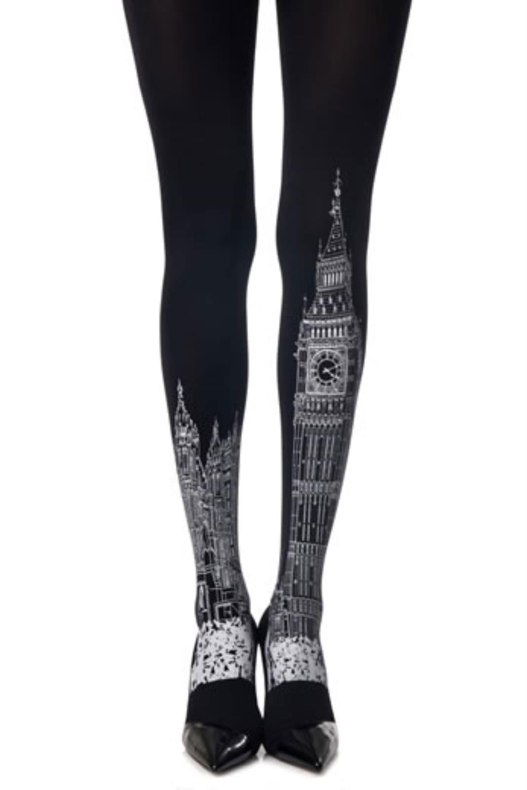Strampi grosi, negri, 120 deni, cu model Turnul Londrei. Brand Zohara