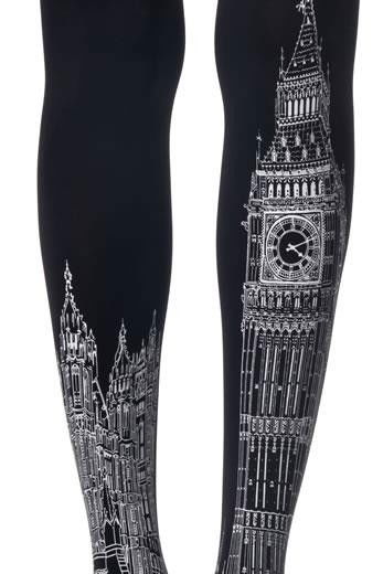 Strampi grosi, negri, 120 deni, cu model Turnul Londrei. Material: 90% poliamida, 10% elastan. Brand Zohara