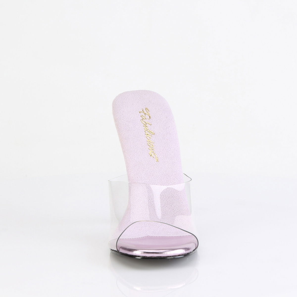 Saboti eleganti, transparenti, pentru concursuri fitness, culturism si bikini. Saboti fara platforma, cu toc de 11,47 cm. Pe talpa este din imitatie de piele intoarsa pentru ca piciorul sa nu transpire si sa alunece. Sabotii au silicon in partea de sus si pietricele in doua nunate pe toc si partea externa a talpii. Brand Pleaser USA