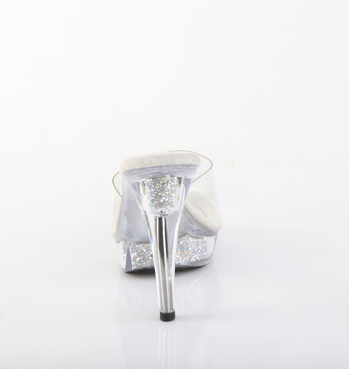 Saboti cu toc inalt, cu platforma cu pietricele in interiorul plasticului si cu banda de silicon deasupra. Sabotii sunt pentru concursurile de fitness dar si pentru tinute casual. Brand Pleaser USA