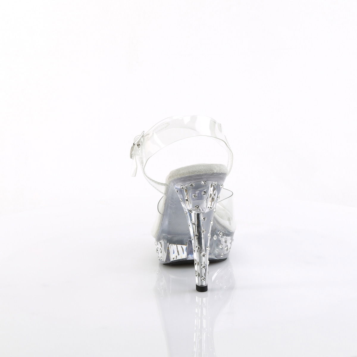 Sandale elegante cu toc si cu platforma transparenta, cu pietricele. Sandale pentru concursuri bikini fitness, dar si pentru mirese sau la plaja. Sandale marimi mari, pana la marimea 44. Brand Pleaser USA