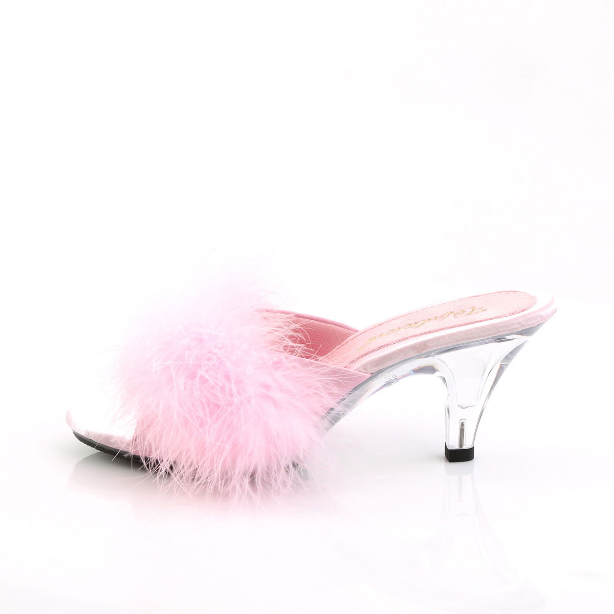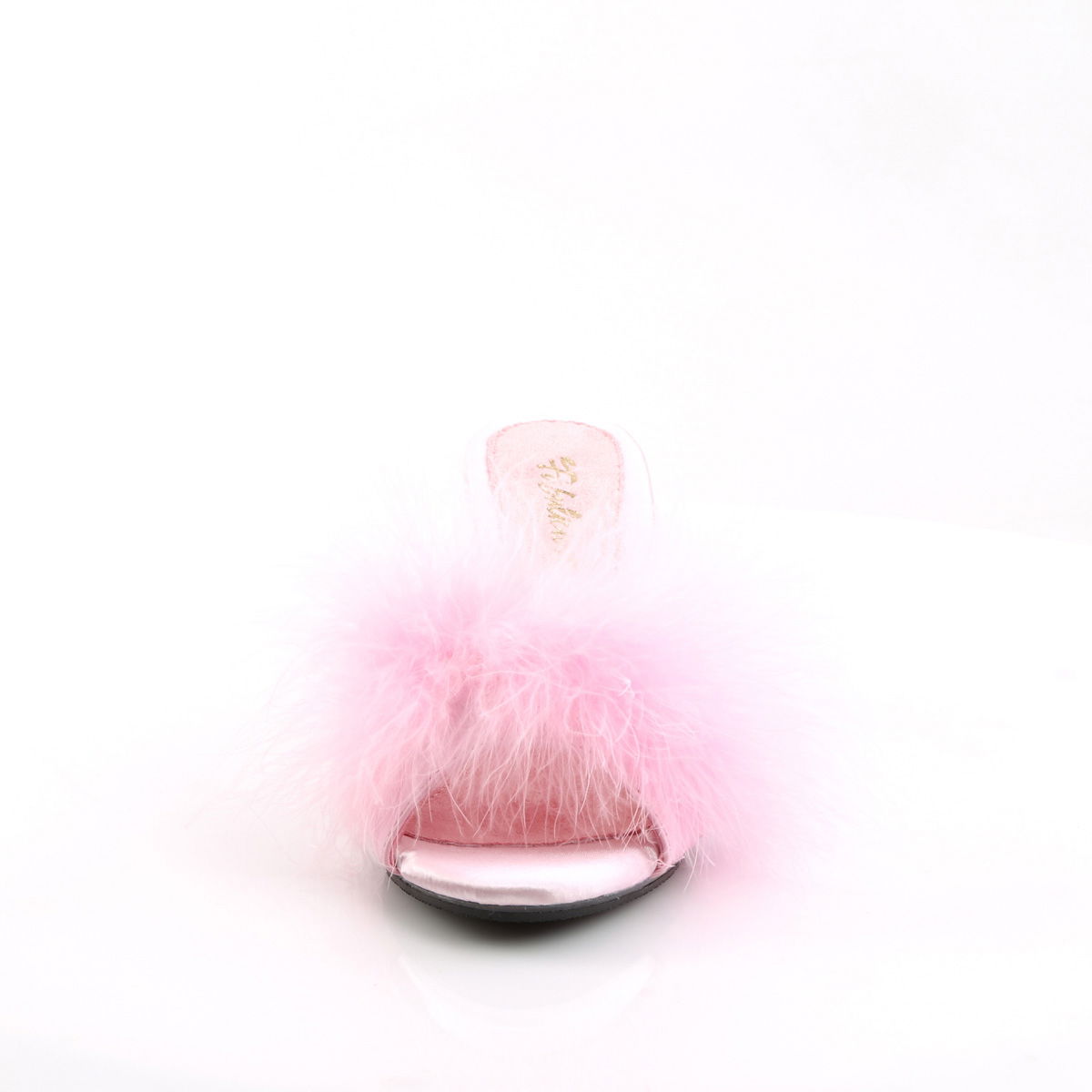 Sandale elegante, sexy, cu puf si toc mic, de 7,6 cm. Sunt foarte la moda in acest an, atat pentru o tinuta speciala, cat si de budoar. Sandalele sunt foarte comode, de culoare roz deschis. Brand Pleaser USA