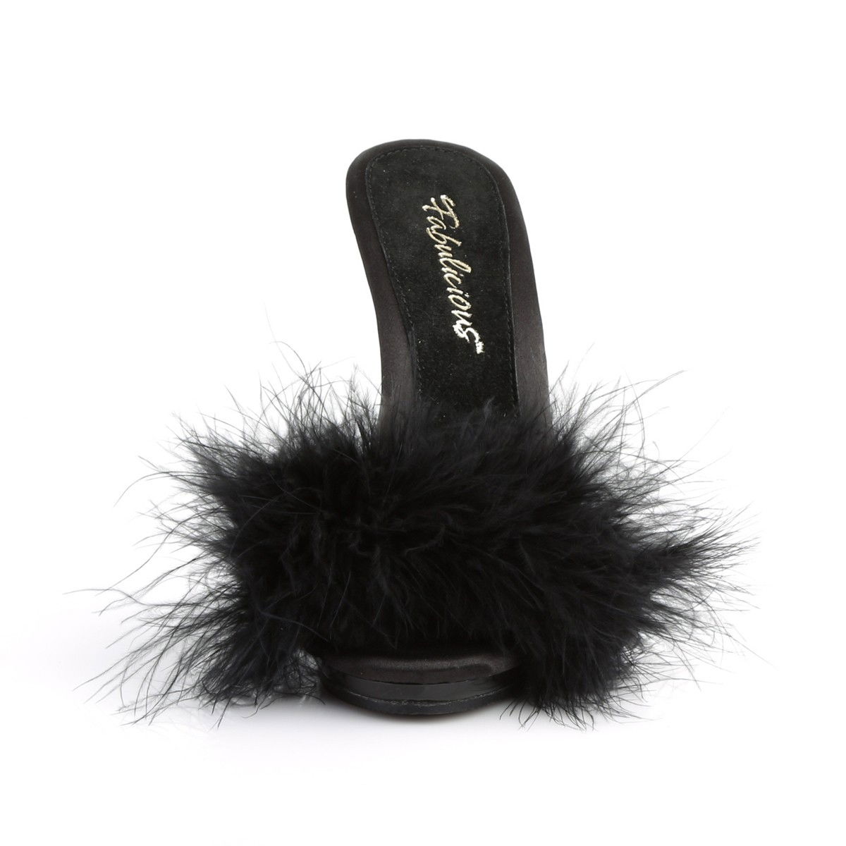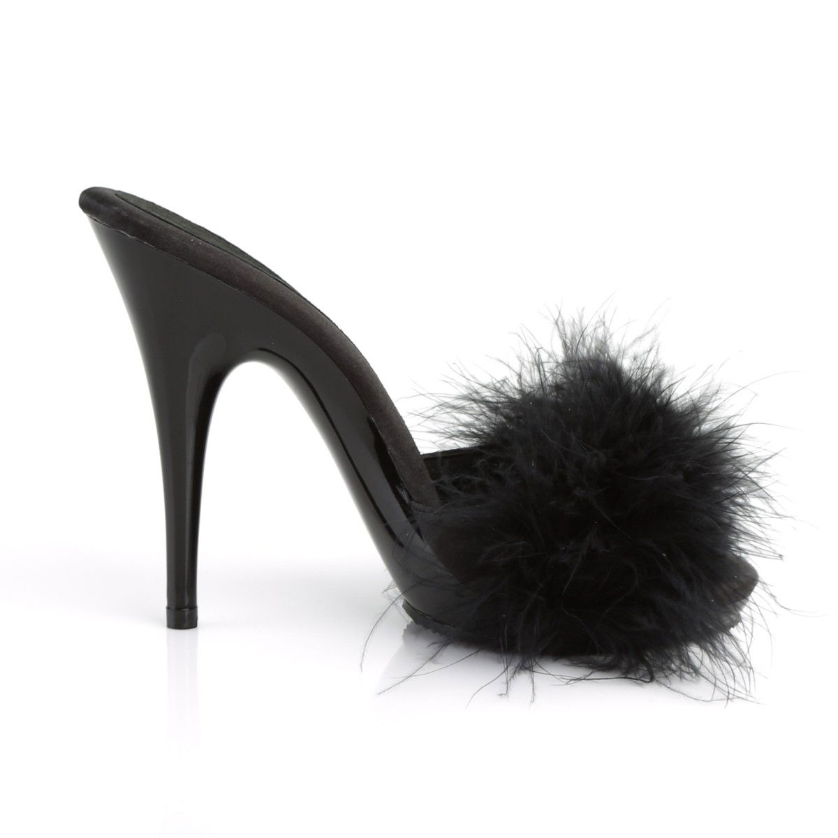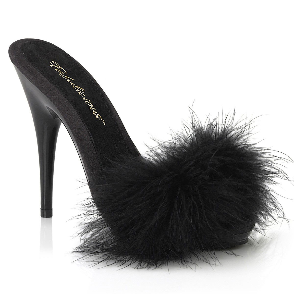 Saboti eleganti, cu puf, chic, cu platforma foarte mica, transparenta. Brand Pleaser