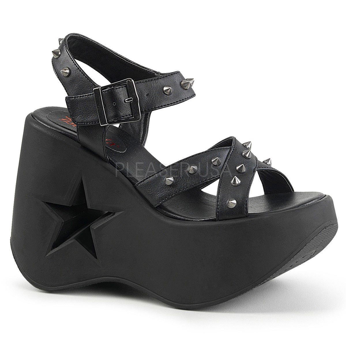 Sandale cu talpa lata, cu stea decupata in platforma, Brand Demonia